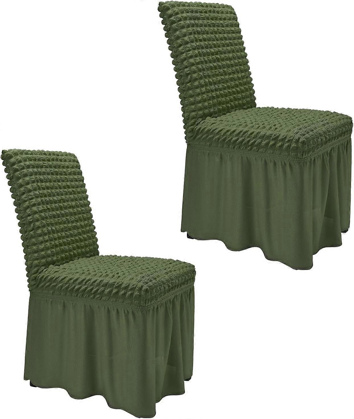 NANAHuang Stretch Dining Chair Covers with Skirt, Set of 6, Green - Compatible with Parson Chairs, Removable, Washable Spandex Slipcovers for Party,