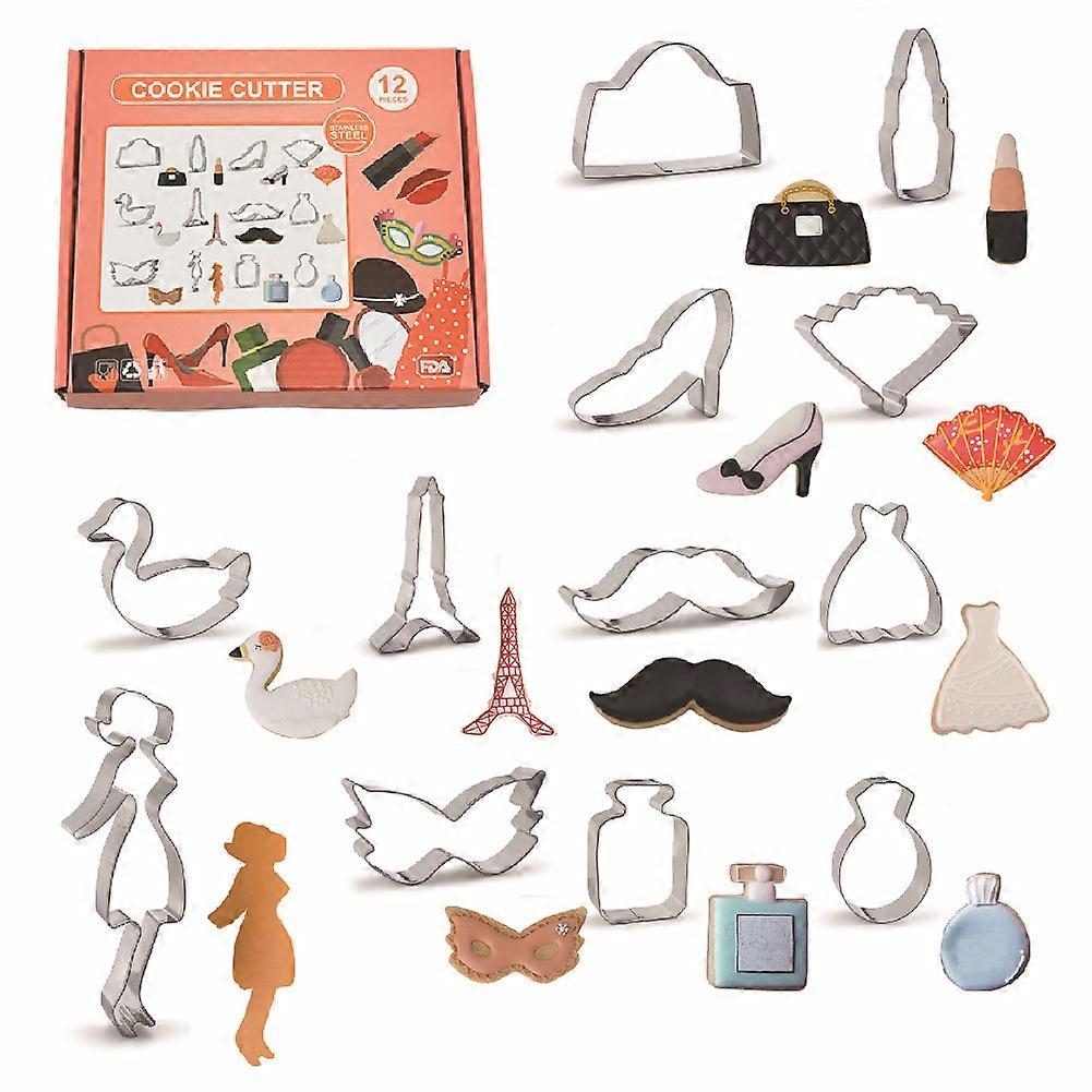 Uclet Biscuit Moulds Stainless Steel Cookie Princess Series DIY Cake Molds Cookie Steamed Bun Cutting 12piece Set