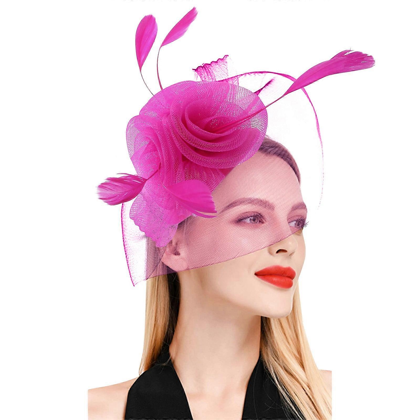 Miayilima Hats for Women Fascinators Womens Flower Hat for Tea Party Cocktail Ball Wedding Church Hot Pink
