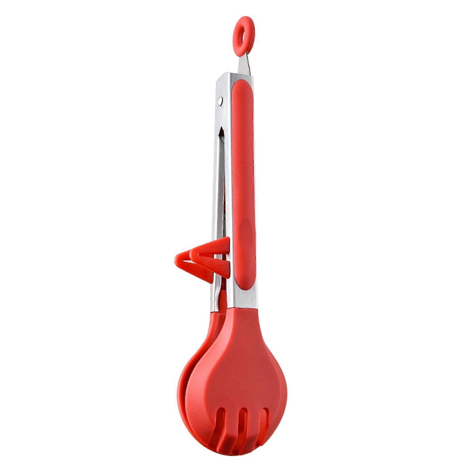 Silicone Food Clip with Stand - Anti-Scald Long Handle, Hangable Multifunctional Tongs Spatula for Steak, Meat, Barbecue