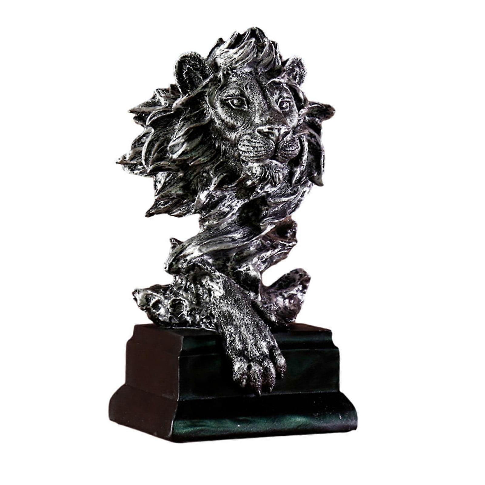 Zriyin 1 Pcs Lion Head Figurine Resin Lion Statue Home Decoration Desktop Ornaments,Silver
