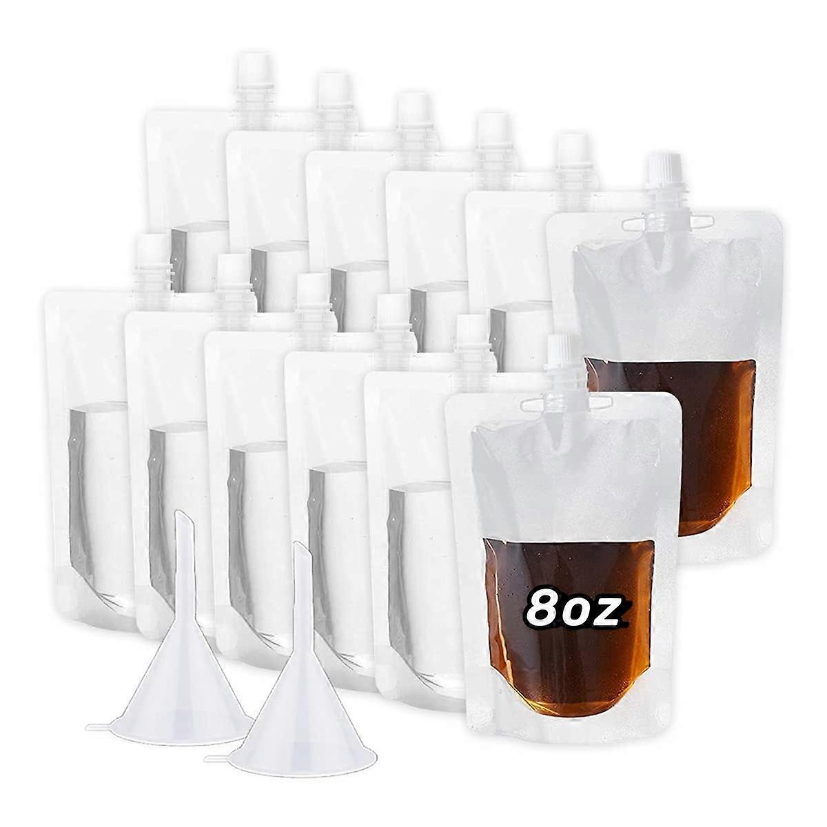 50 Pcs 8 oz Plastic Flask Pouch, Leak-Proof Reusable for Juice, Travel & Outdoor, Compatible with Straight Mouth Funnels – Includes 2 Funnels
