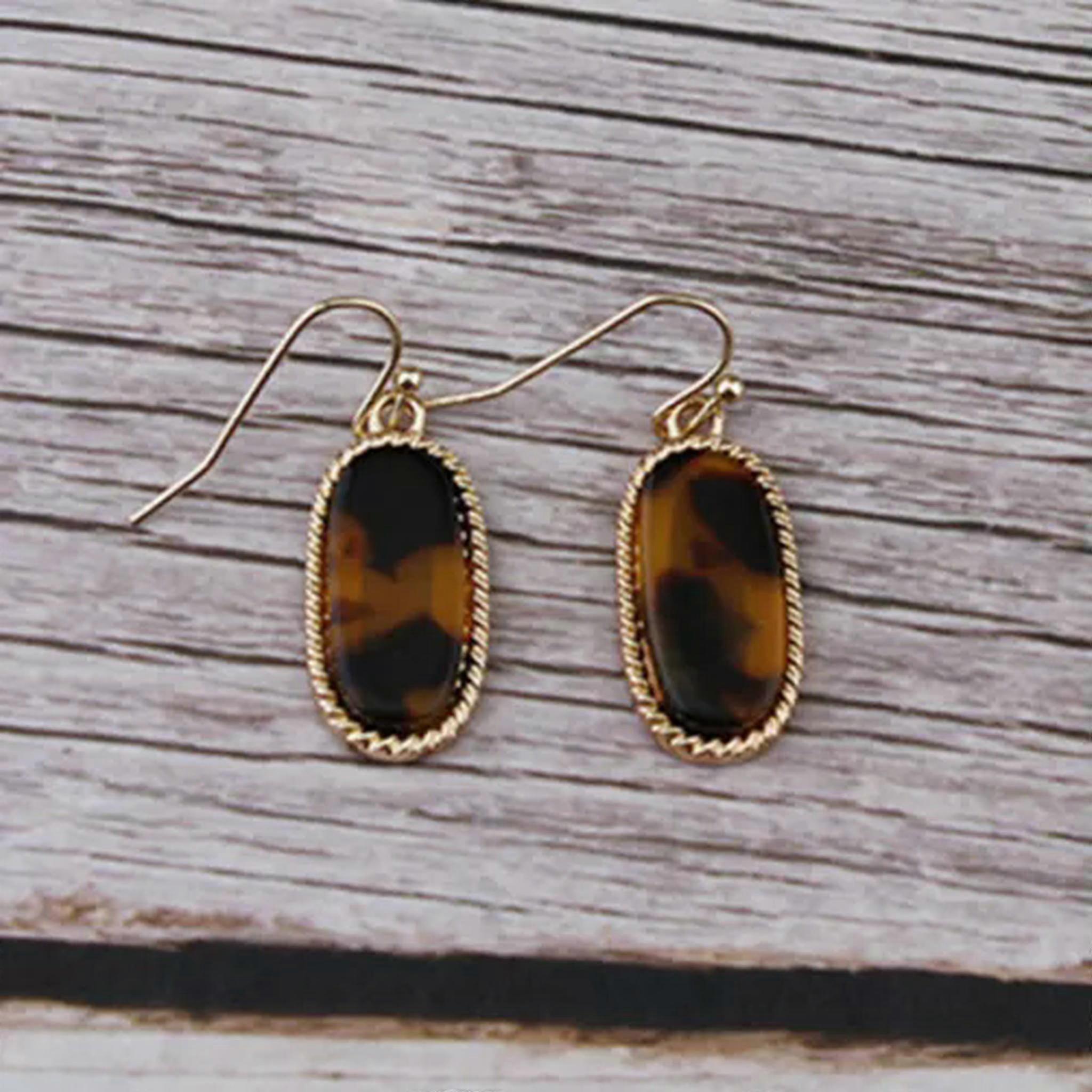 RSAMD Mini Tortoise Shell Oval Drop Earrings for Women Bright Color Jewelry accessory-Leopard