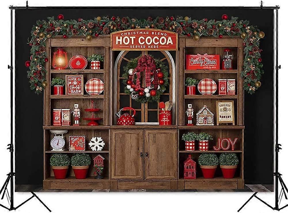 Christmas Hot Cocoa Shop Backdrop for Photography Kitchen Cupboard Kid Children Background for Photo Studio Photocall
