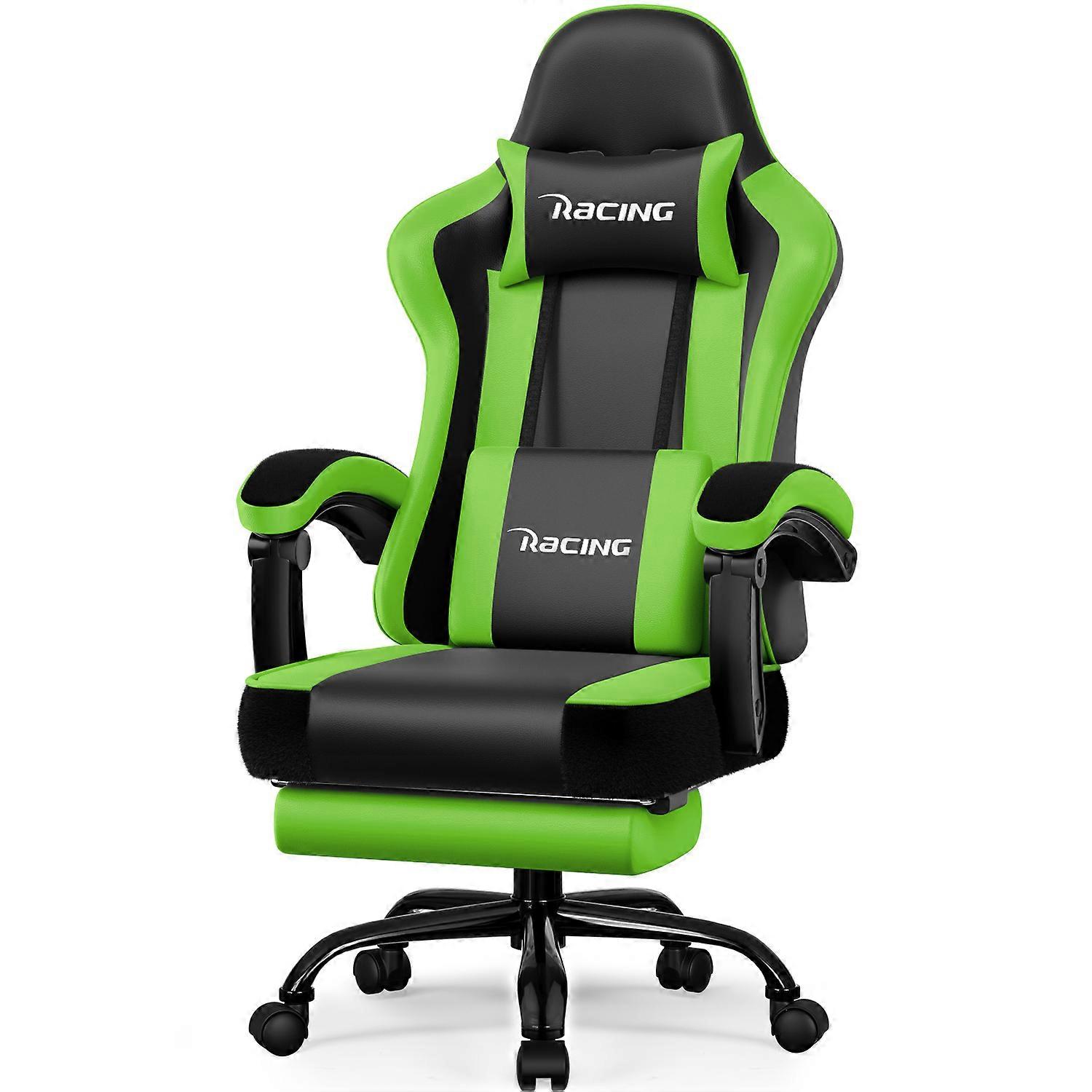 Gaming Chair, Ergonomic Gamer Chair with Footrest Headrest Lumbar Cushion, Swivel Chair Ergonomic Tilt Function up to 170°,150 kg, Green