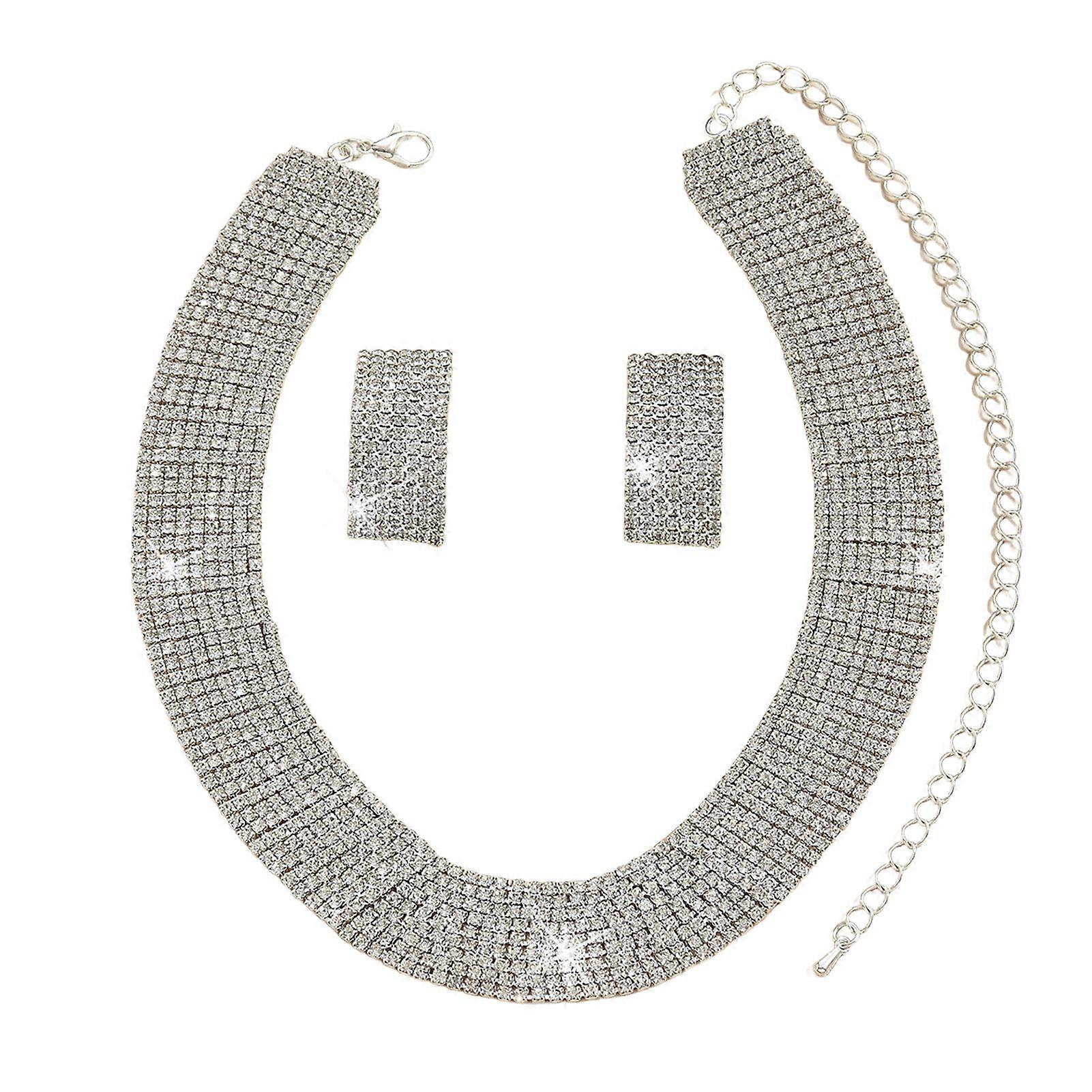 2 Pcs/Set Women Necklace Earrings Set for Formal Banquet And Prom Multi-layered Rhinestone Adjustable Length Wedding Bride Star Celebrity Jewelry Set