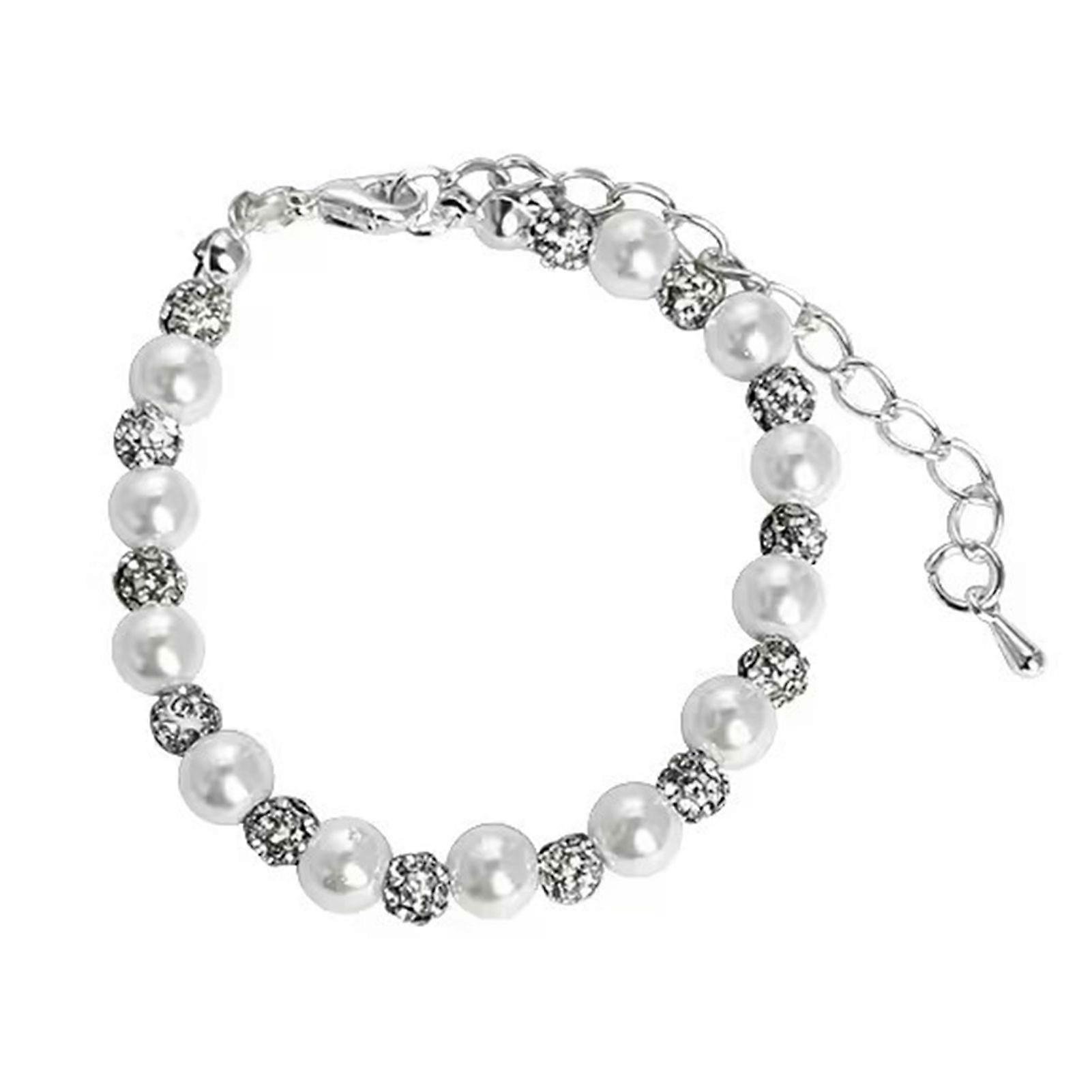 Jikaix Lady Bracelet Faux Pearl Glittering Rhinestone Decor Adjustable Wrist Chain with Extended Chain Party Prom Jewelry Holiday Anniversary Gift