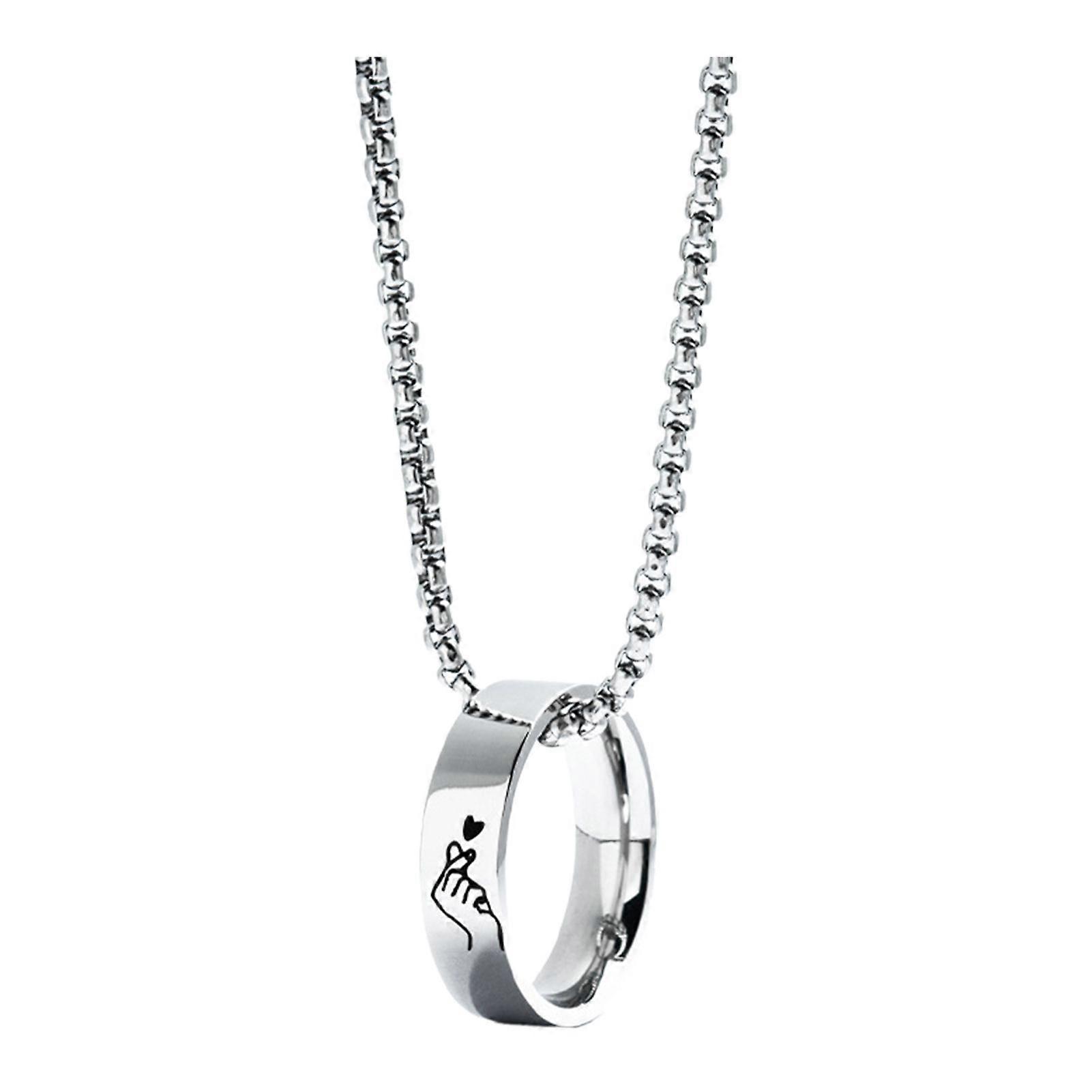 Jikaix Matching Necklace for Couples Engraved Ring Pendant Necklace Romantic Jewelry Gifts for Anniversary Wedding Valentine's Day Christmas Birthday