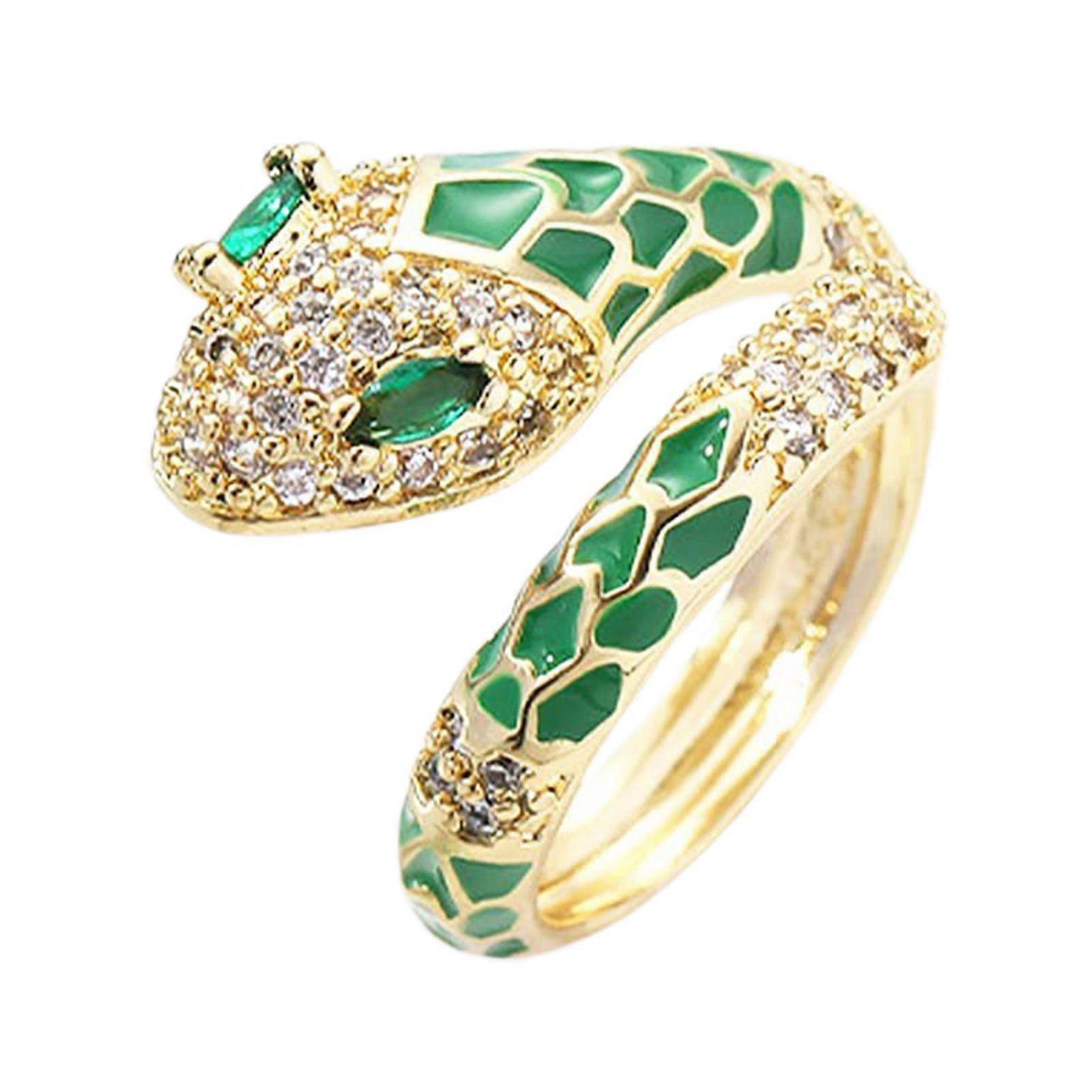 Jikaix Women Finger Ring Adjustable Opening Sparkling Rhinestones Snake Shape Ring Cocktail Party Jewelry Gift