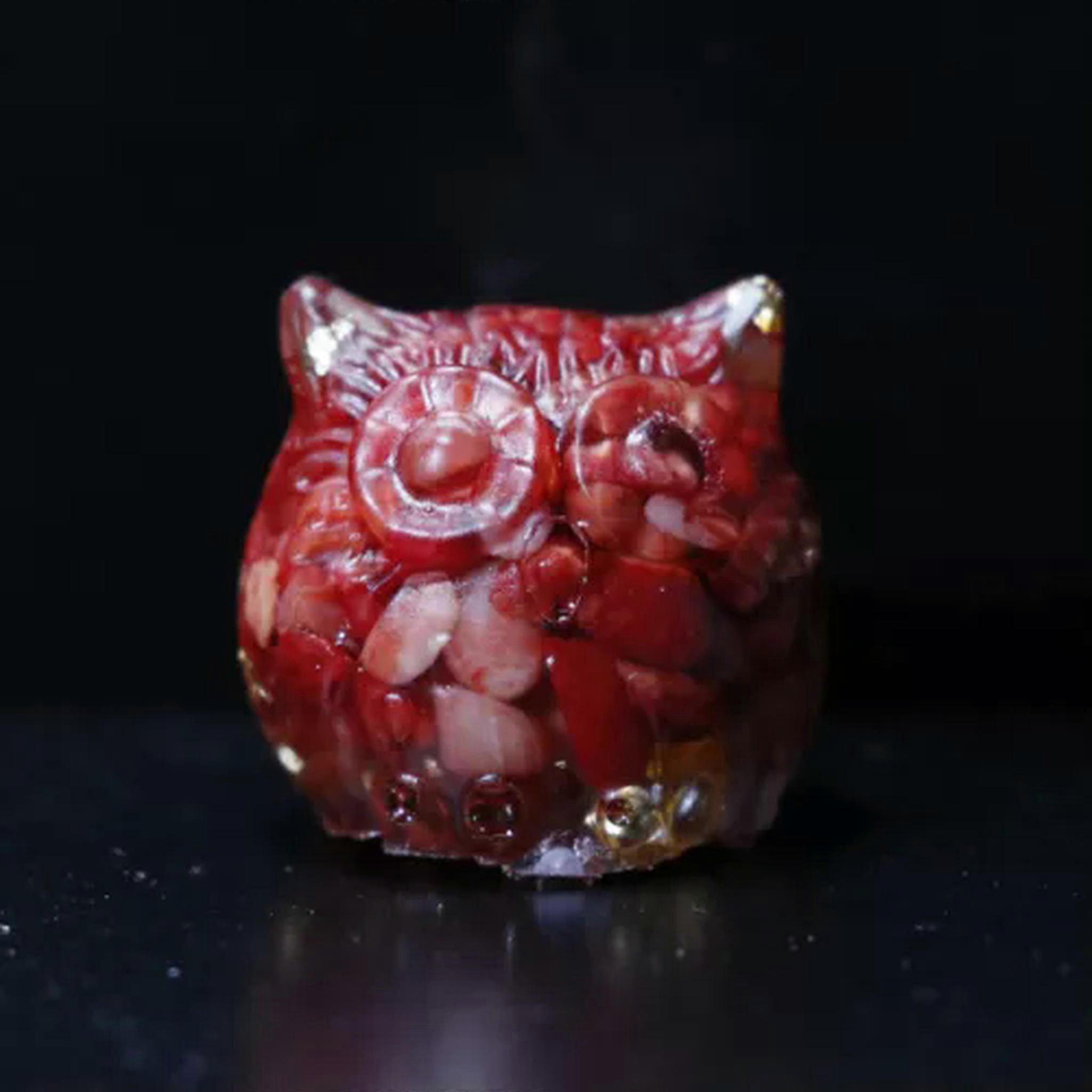 RSAMD Natural Mini Owl Crystal Quartz Epoxy Resin Gravels Chakra Ornament Decor Crafts-Red Coral + Foil-1PC (Random Pick)