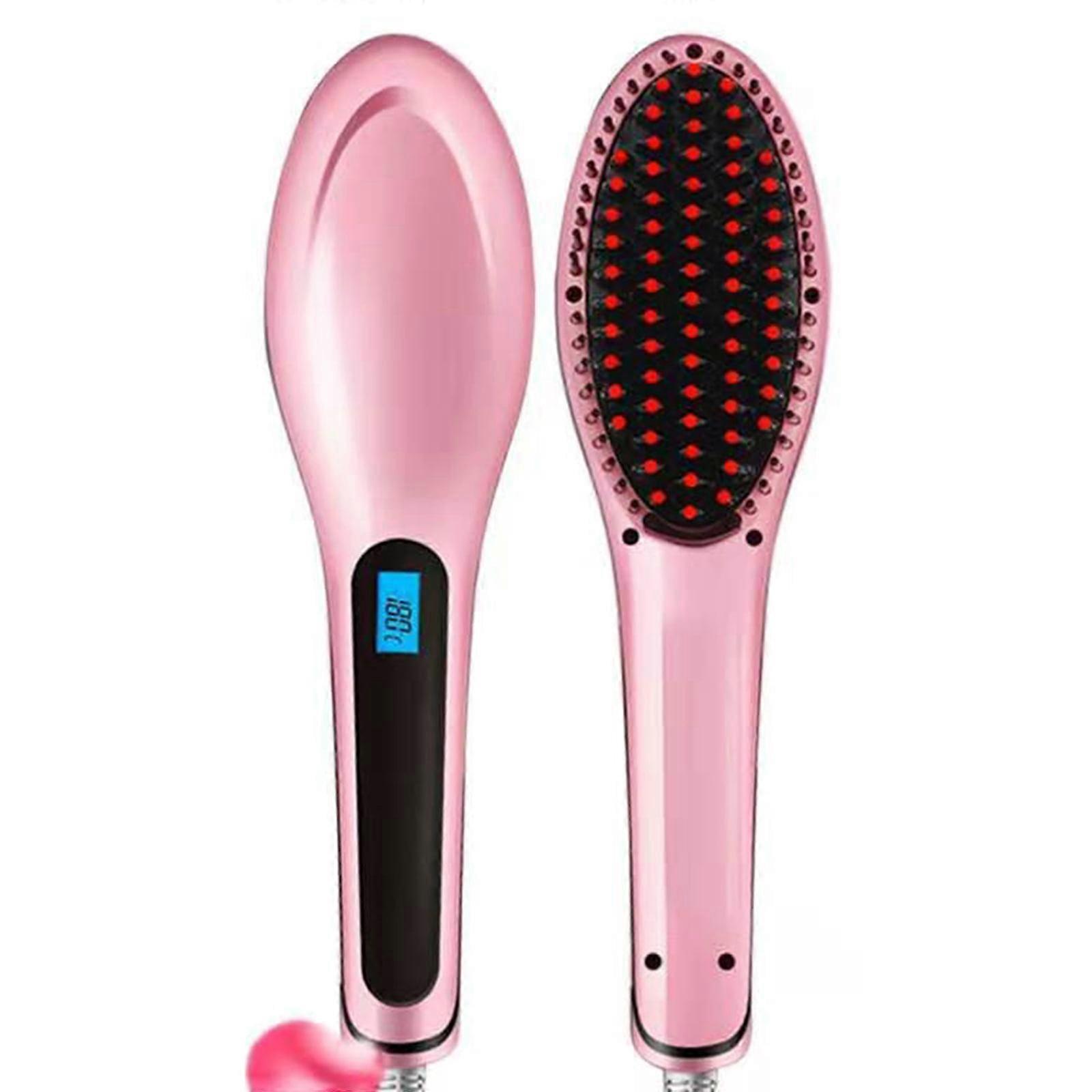 Hair Straightening Comb LCD Display Digital Brush Iron Styling for Home Salon Men Women Hair Brush Care Styling Curling Tools Product name: electric straight hair comb Product size: 27 * 7 * 4cm Weight: 460g Packaging method: color box packaging Color box size: 33 * 11 * 5.5cm Rated voltage: 100-240VAC Rated power: 40W characteristic: Power: 29w Plate: ceramic Color: pink Temperature control: 80~230 ℃ Package includes: 1 straight hair brush 1 x instruction (English) 1. Ceramic tourmaline heating plate, more uniform heating 2. When the product reaches the maximum temperature, the red tip surface is only 50 ℃, so there is no need to worry. Burn. 3. The brush can protect the hair from damage during work. 4. The digital LCD display screen displays the operation on a clear movable screen. 5. Enhance the most advanced ceramic heater (PTC) for fast heating and constant heating.