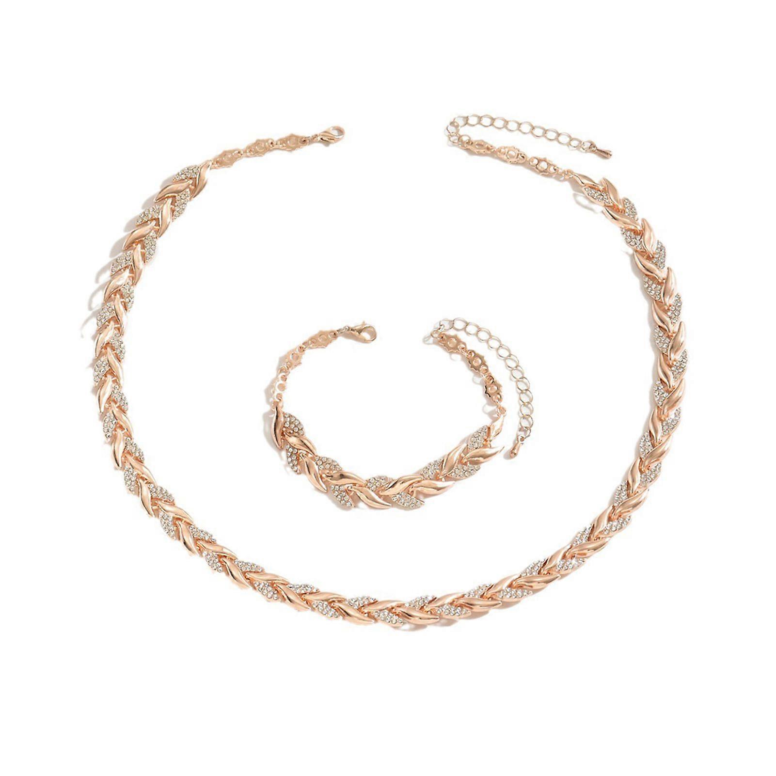 Jikaix 2Pcs/Set Women Jewelry Set Leaves Shape Rhinestone Inlaid Adjustable Length Necklace Bracelet Set Party Wedding Decor