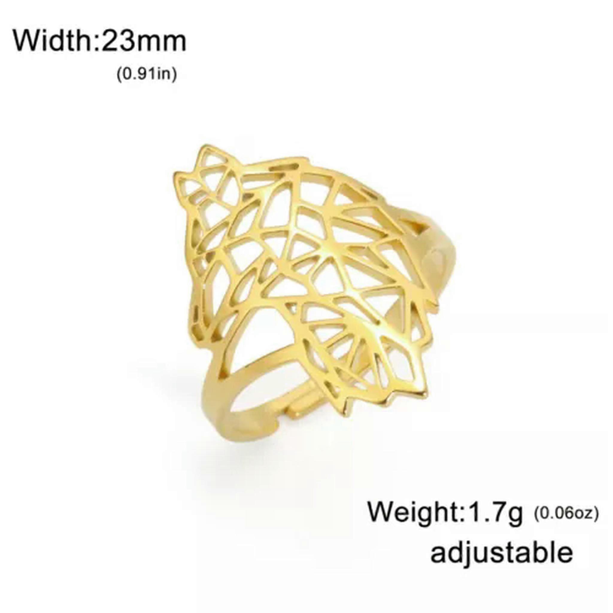 RSAMD Geometry Wolf Animal Head Ring Stainless Steel Jewelry Gift Adjustable-Adjustable-Gold Welcome to our jewelry emporium that's brimming with dazzling options for every style seeker. For the lovely ladies, we have an array of enchanting pieces. From the dainty necklaces that delicately adorn your collarbone to the elaborate rings that make a bold statement. There are bracelets that add a touch of grace and earrings that enhance your beauty. But don't think we've forgotten about the gentlemen! We have a selection of masculine and stylish accessories too. Sturdy rings for a touch of rugged charm, sleek bracelets that exude sophistication, and understated necklaces that add a hint of refinement. Our collection combines timeless classics with modern trends, crafted with precision and using top-quality materials. Whether you're looking for a piece to wear on a daily basis or for a special event, we've got you covered. So, step into our world of jewelry and discover that perfect piece that reflects your individuality, no matter your gender! Suitable for Gifting Fit for Every Occasion 100% New and of High Quality Crafted from Professional-Quality Materials Easy to Pair and Wearable at All Times and Places