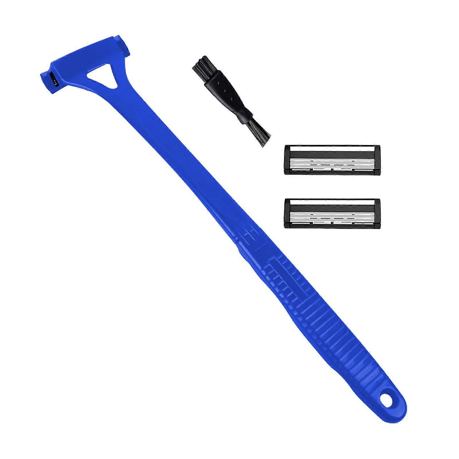 Jikaix Men Back Shaver with 2 Heads Brush Long Handle Bath Shower Back Hair Trimmer Ergonomic Manual Wet Dry Body Hair Remover Tools