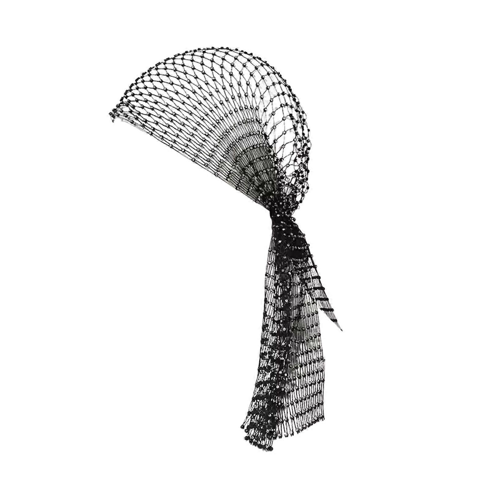 Jikaix Rhinestone Pirate Hat Elastic Snood Scarf Cap Masquerade Ball Cosplay Events Mesh Hollow Out Headscarf