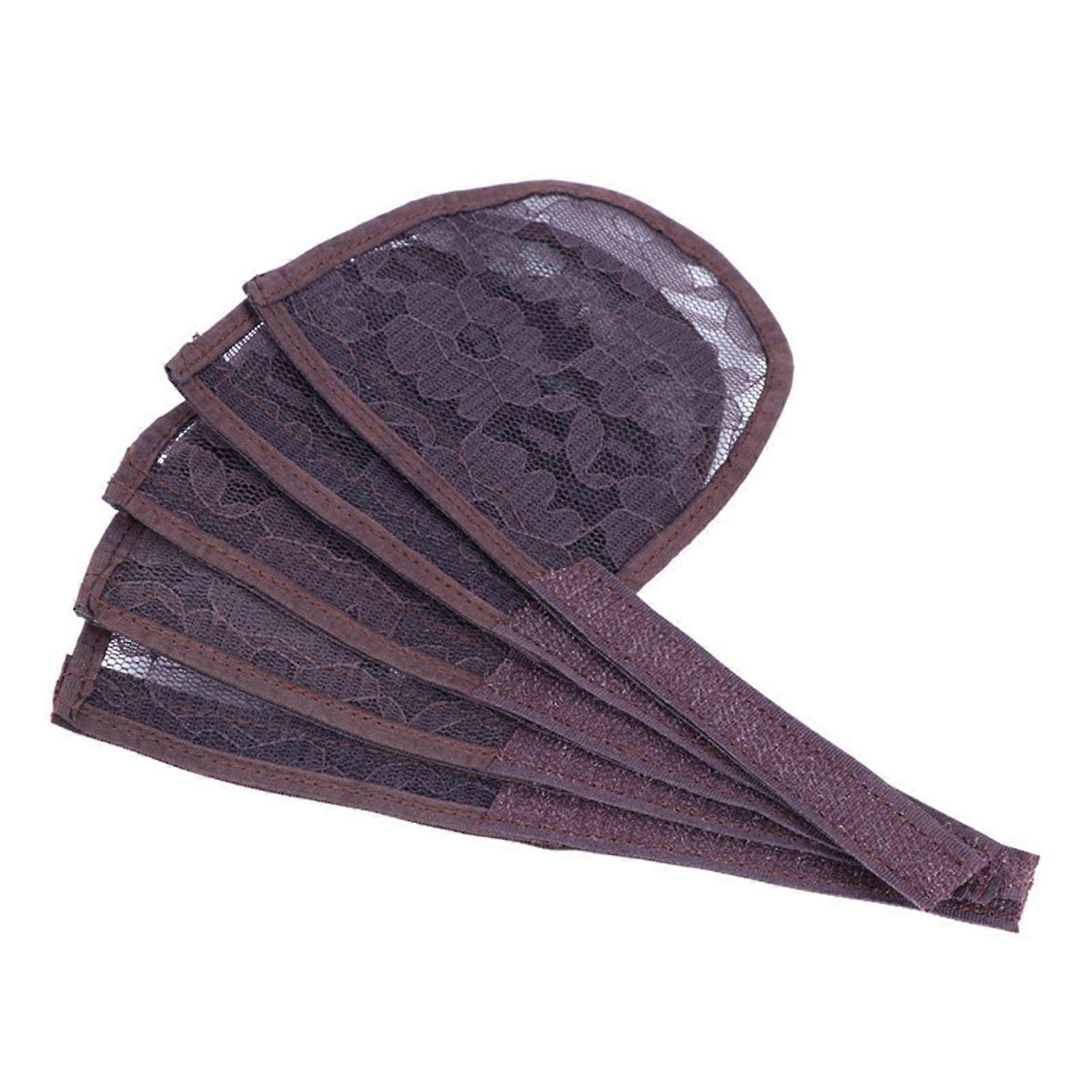 Jikaix 5Pcs Ponytail Wig Net Adjustable Fastener Tape Strap Women Girls Ponytail Hair Extension Weaving Floral Lace Mesh Band Hair Accessories