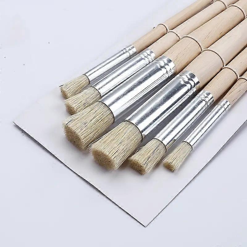 Set of 6 Stencil Paint Brushes with Bristle Hair And Wooden Handles, Ideal for DIY Crafts Including Watercolor, Oil, And Acrylic