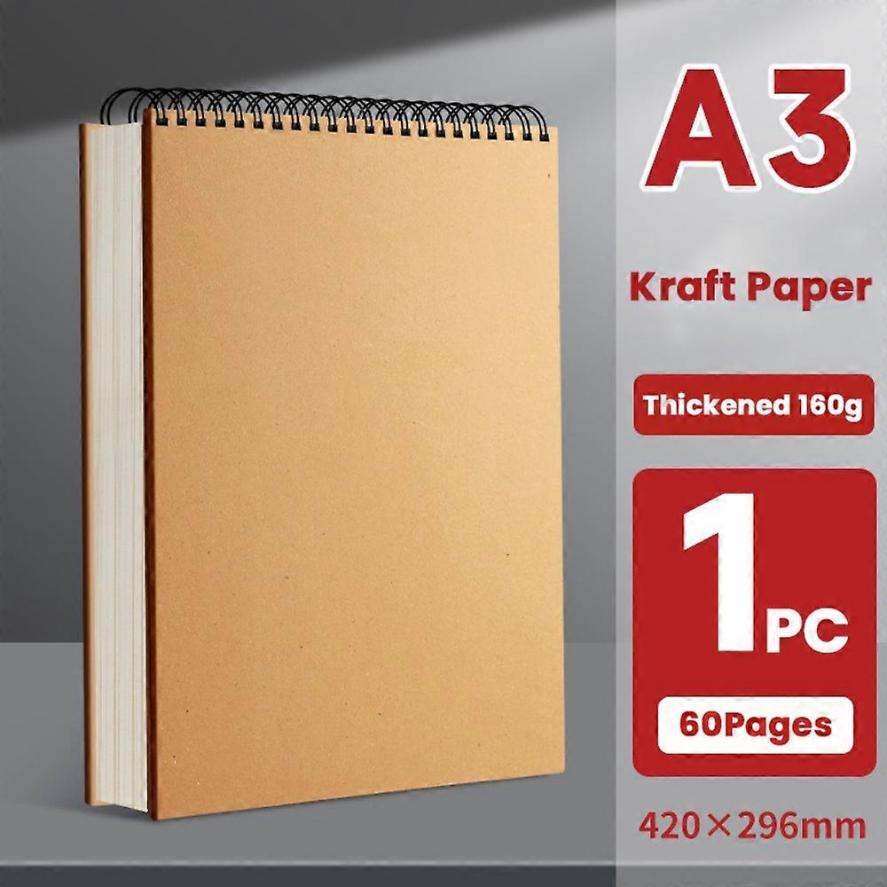 Thickening Kraft Paper Art Sketchbook Flip-up 30Sheets/60Pages Drawing Notepad A4/8K/16K/32K/A3 Blank Painting Paper Gift