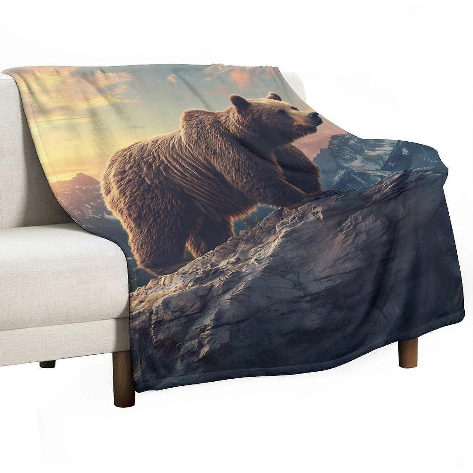 Grizzly Bear And Sunrise Super Soft Blanket Christmas Throw Blanket Flannel Microfiber Blankets for Couch Bed Sofa Fluffy and Warm 30"x40"