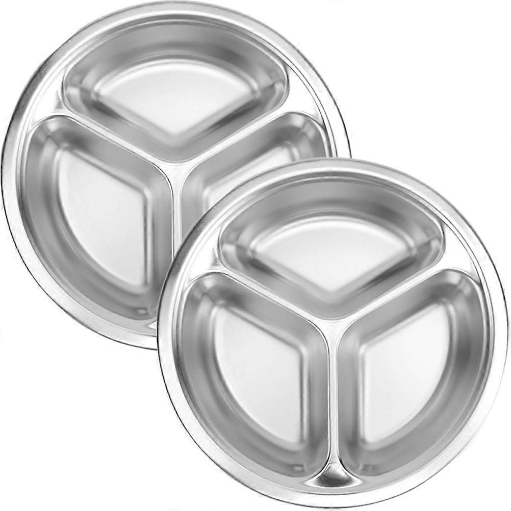 2 Pcs Three Compartment Serving Plate Baby Round Tray Divided Plates Dishes Portion Control Divider Student