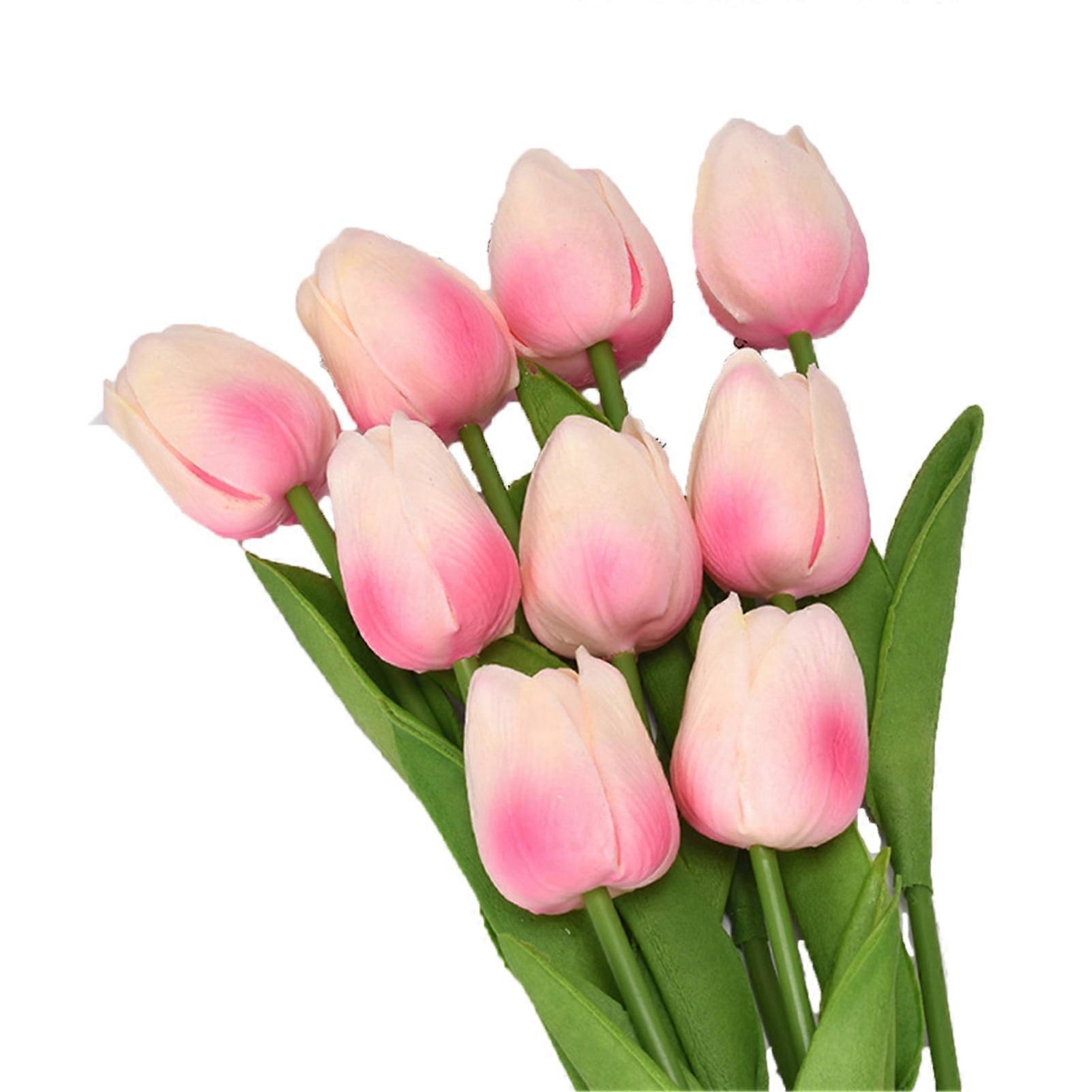 Farfi 5Pcs Artificial Tulips Lifelike Realistic Plastic Faux Silk Floral Simulation for Home (Soft Pink)