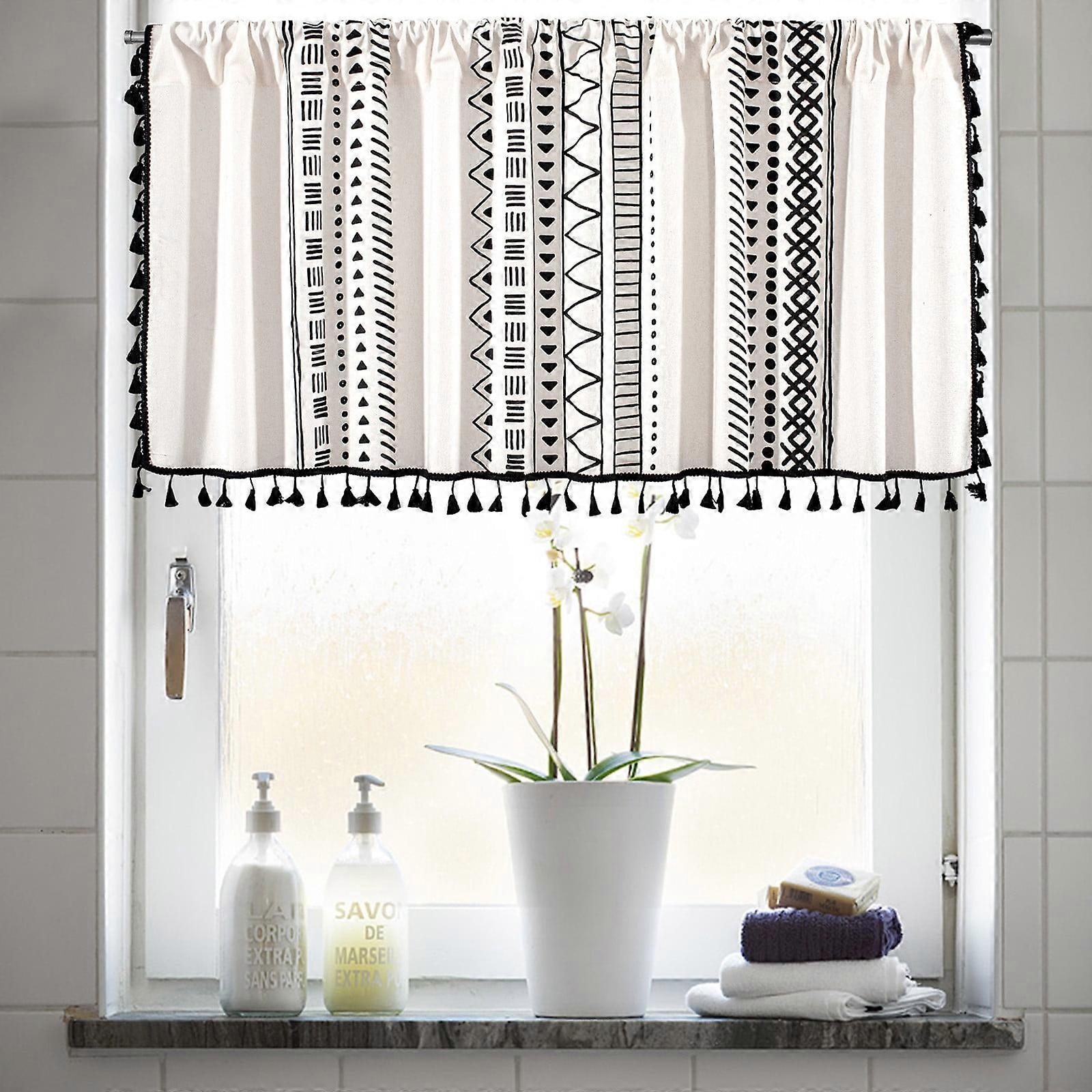 Txmfgh Valance Curtains for Kitchen, Cotton-Linen Blend, Light Blocking, Short Rod Pocket Panels, Easy to Clean, Thermal Insulation