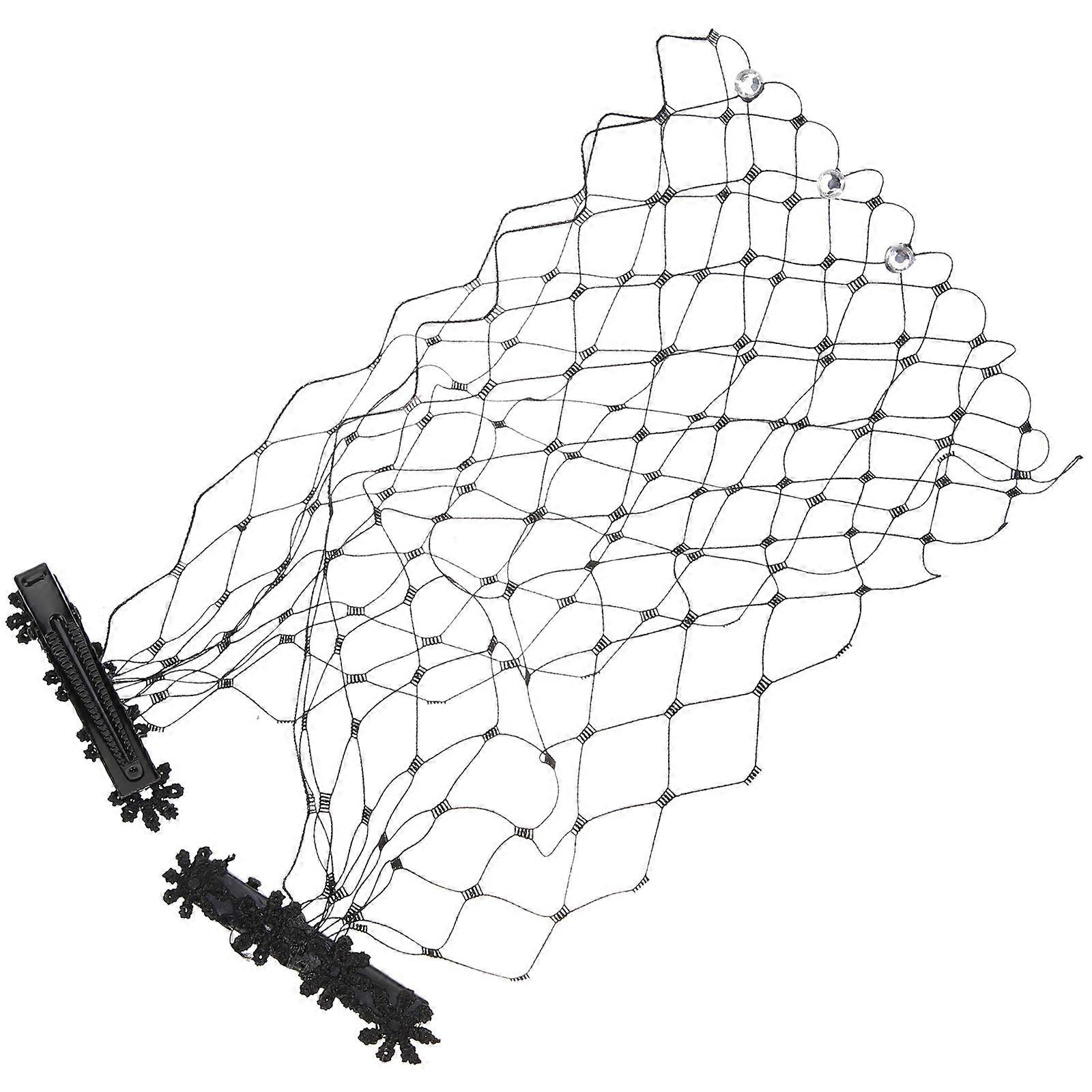 Bride Veil Face Veil Black Mesh Elegant Accessory Masquerade Costume 35x10cm Rhinestone 1Set
