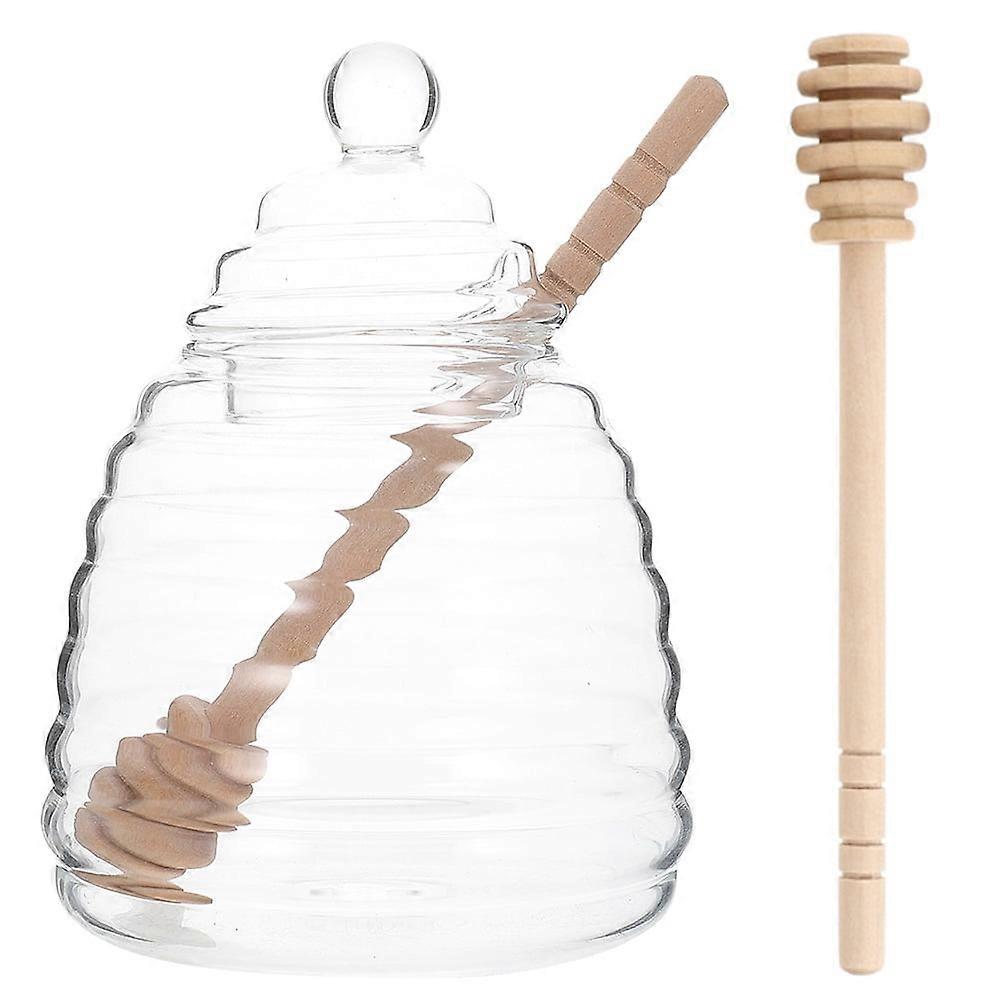 Glass Honey Jar Dispenser Kitchen Beehive Dish High Borosilicate Container Wood