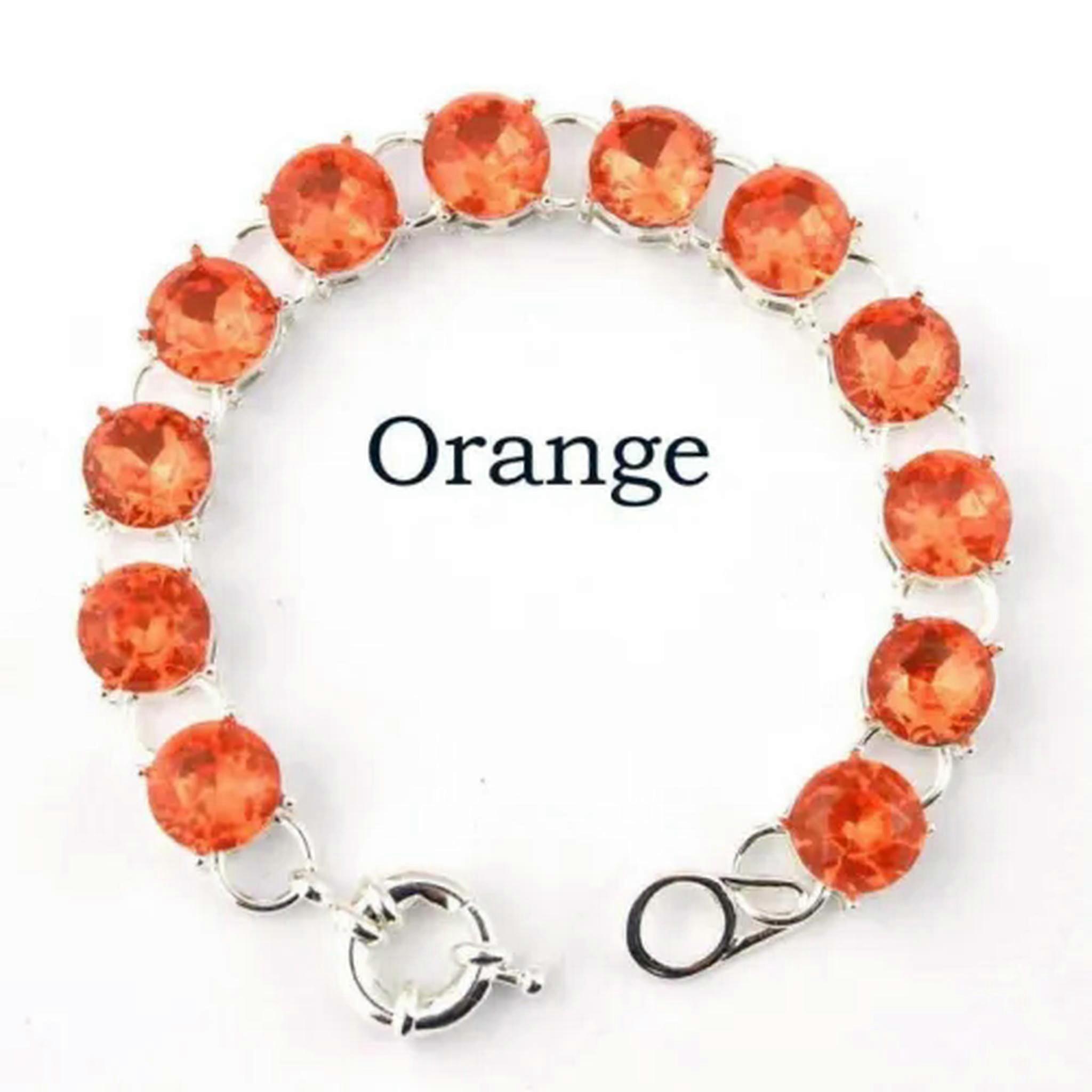 RSAMD Classic Vintage Glass Crystal Dot Bracelet for Women Faceted Gemstone Bangles-Silver Orange