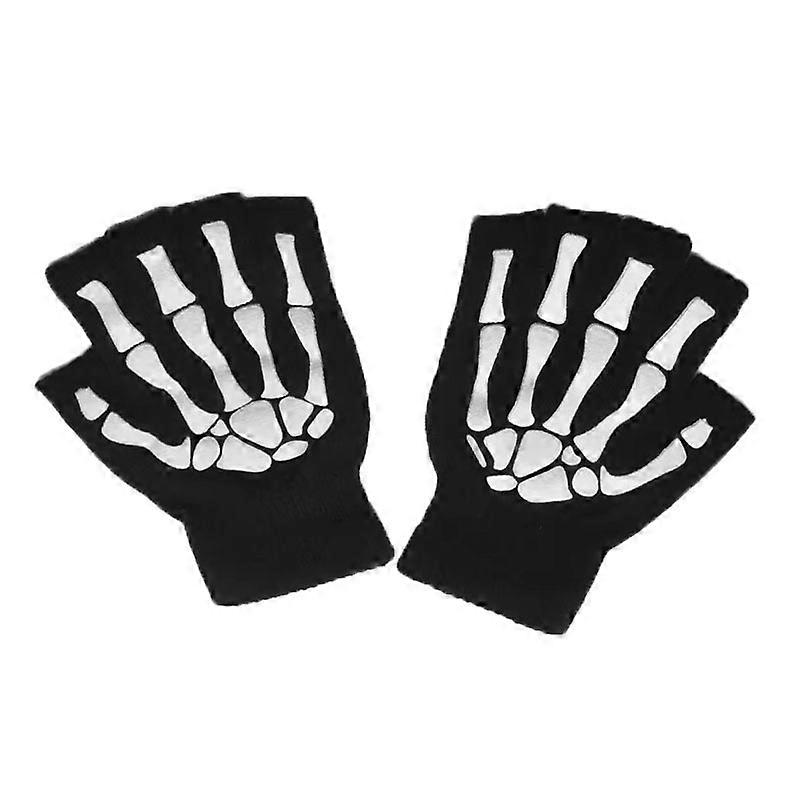 1/2/3/4pair New Kids Halloween Skeleton Skull Half Finger Luminous Punk Gloves Winter Skull Fingerless Black Mittens