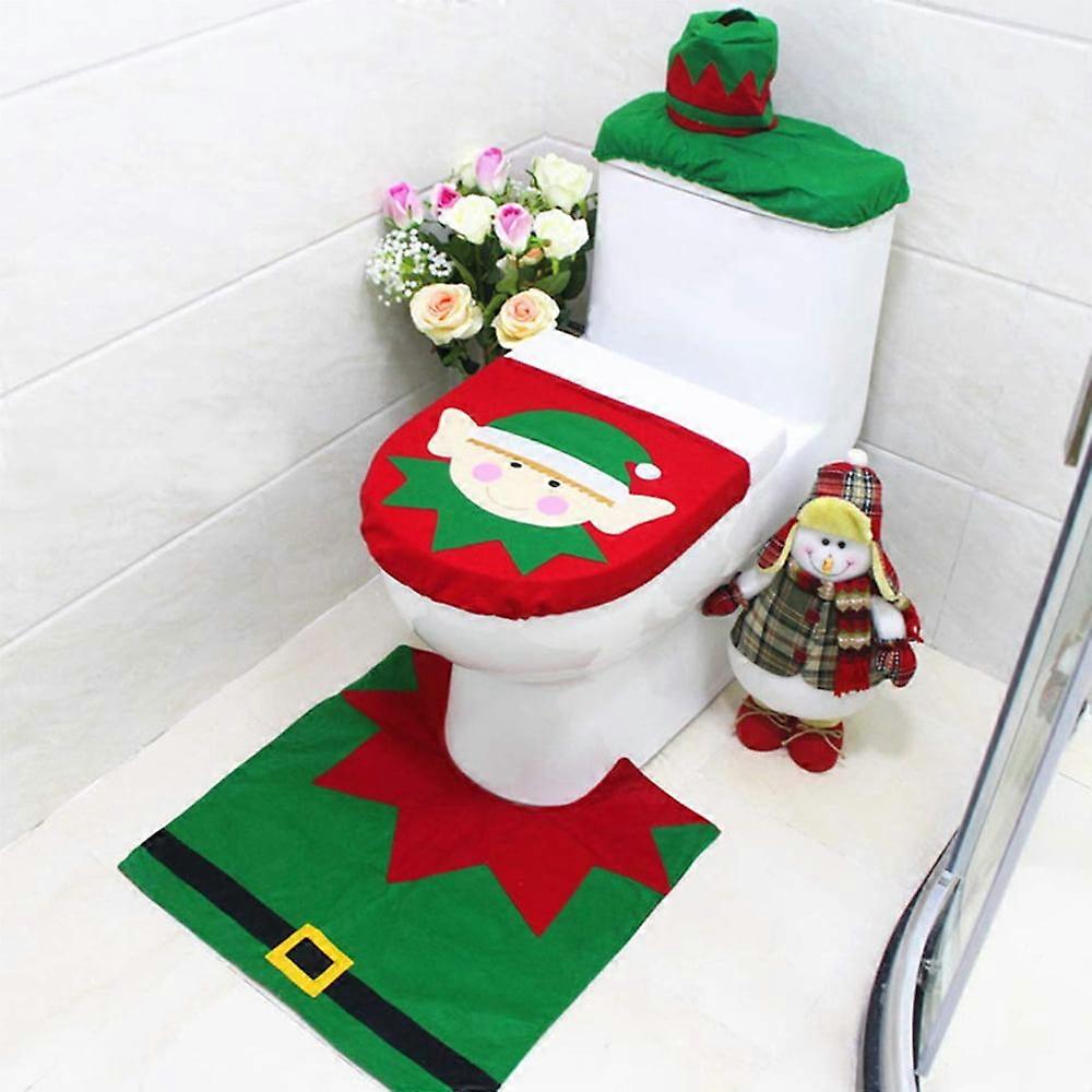 3 Pieces Christmas Santa Theme Bathroom Decoration Set Includes Toilet Seat Cover, Rugs, Tank Cover for Xmas Indoor Decor, Party Favors