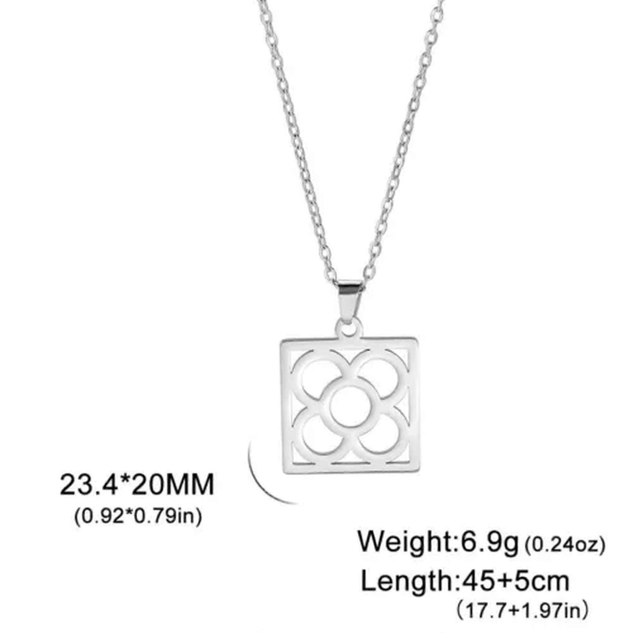 RSAMD Barcelona Flower Square Pendant Necklace Stainless Steel Clavicle Chain Jewelry-45-50 cm-Steel color
