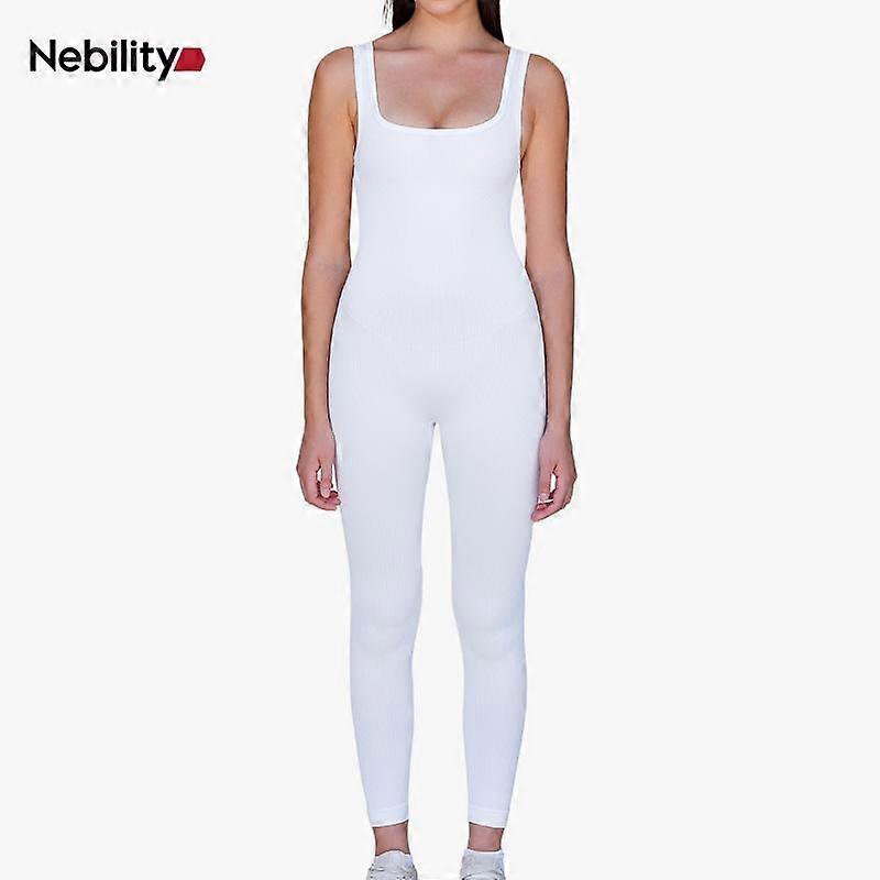 Nebility Women's High Elasticity Breathable Fabric Long Sleeve Yoga Jumpsuits Ribbed Design for Workout Leg Shape Ornament One Piece Activew