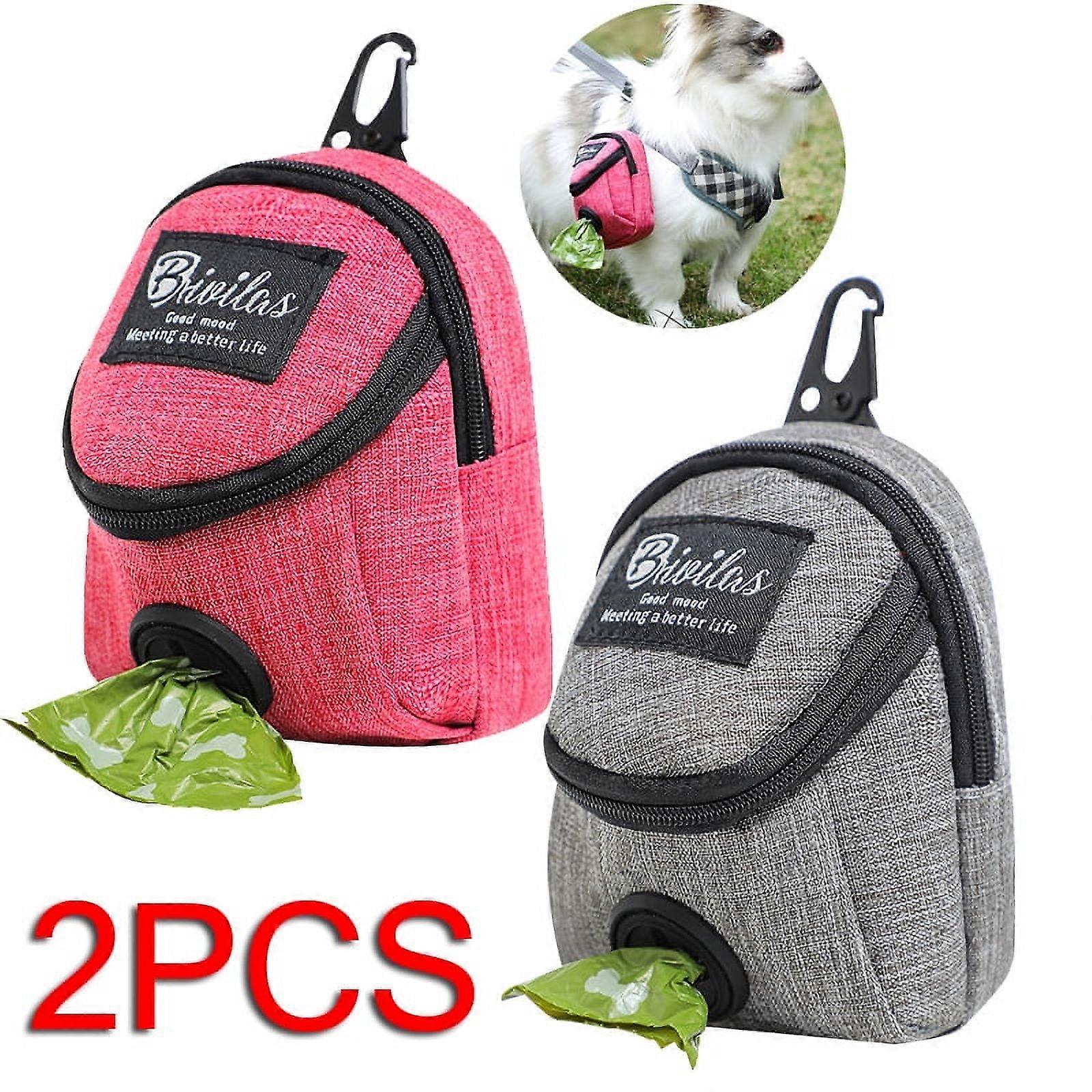 Biodegradable Dog Poop Waste Bags 2Pack Holder Dispenser Cleaning Pick Up Tools Pet Accessories(Gray&Pink)