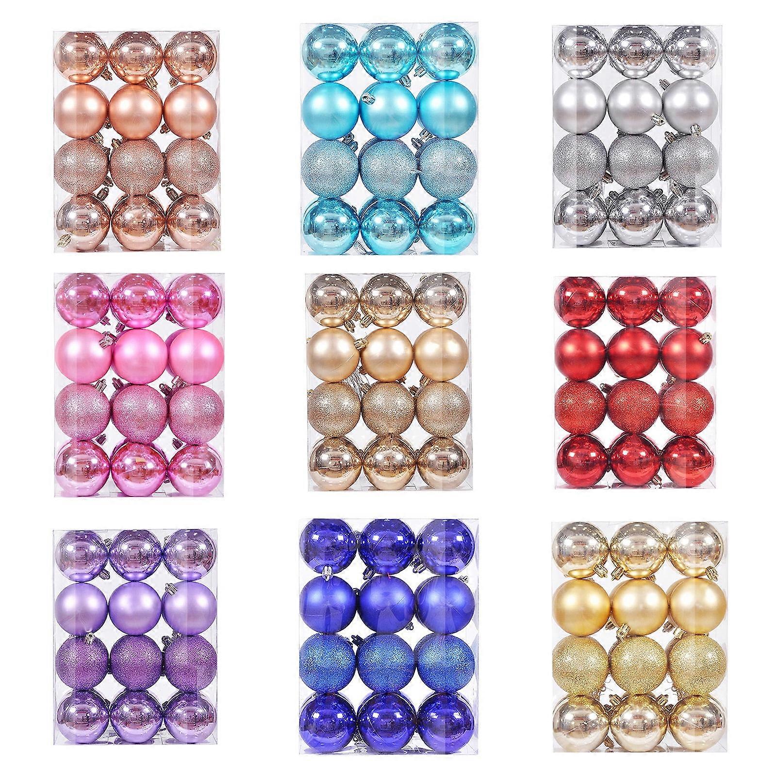 24Pcs Christmas Balls, Bright Color Matte Finish, Shatterproof PS Ornaments for Xmas Tree & Party Decor, Compatible with AURORA TRADE