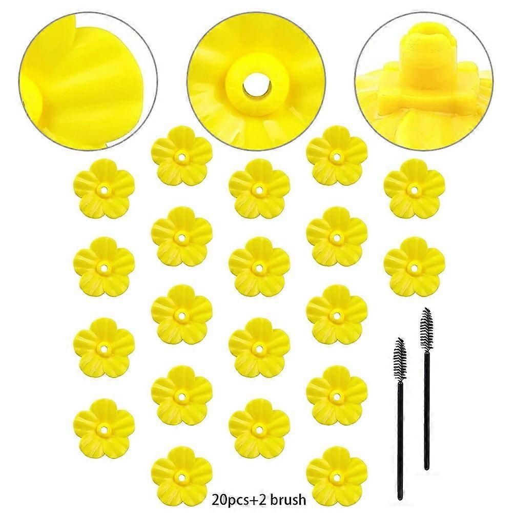 QIFEI 20Pcs Hummingbird Feeders Flowers with Cleaning Brush , Bird Feeder Replacement Parts Feeding Ports Hummingbird Feeders for Outdoors Yellow