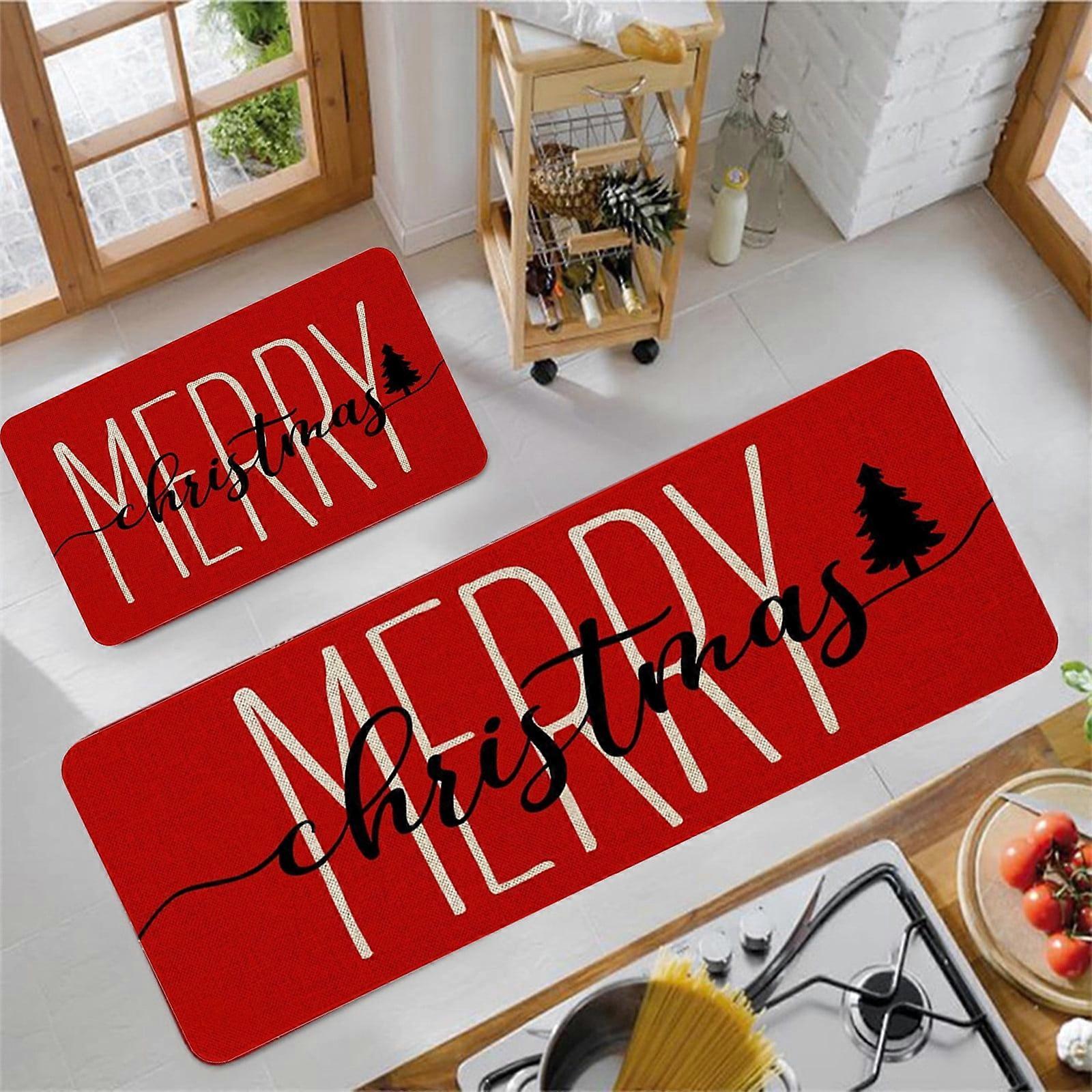 2 Pcs Christmas Kitchen Mats 23.6*15.7 & 15.7*47.2 Inch, Farmhouse Truck Rugs, compatible with Holiday Decor for Bathroom, Home, Indoor