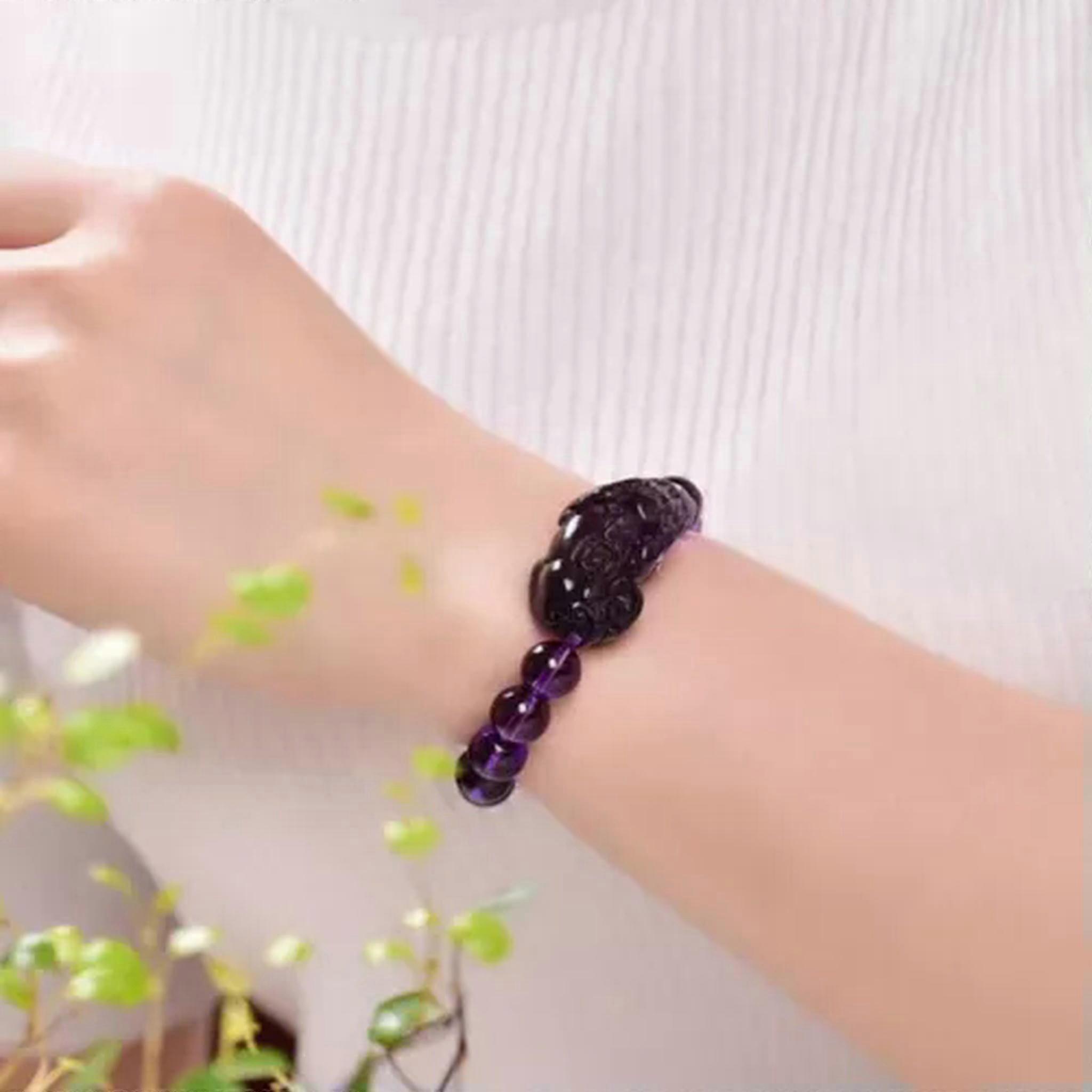 RSAMD Amethyst Bracelet Pixiu Bring Lucky Wealth Chinese Fengshui Beast Crystal BeaJO-10mm