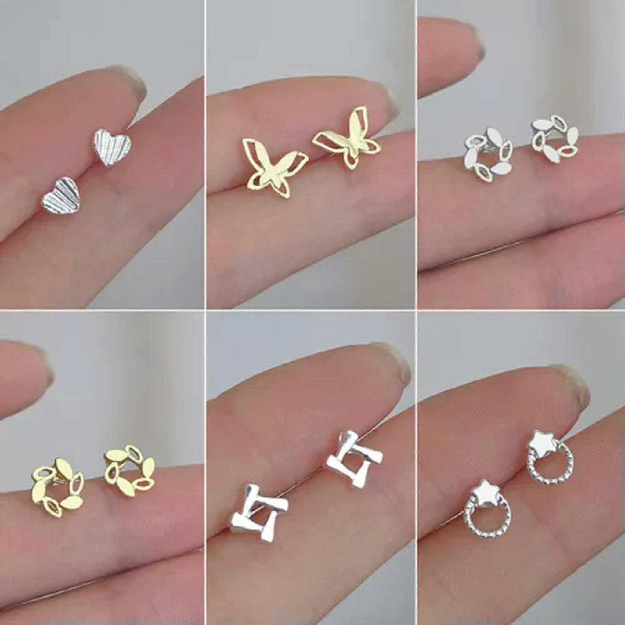 RSAMD 1Pair Minimalist Silver Needles Ear Studs Tulip Cherry Small Love Heart Earrinjo-A4