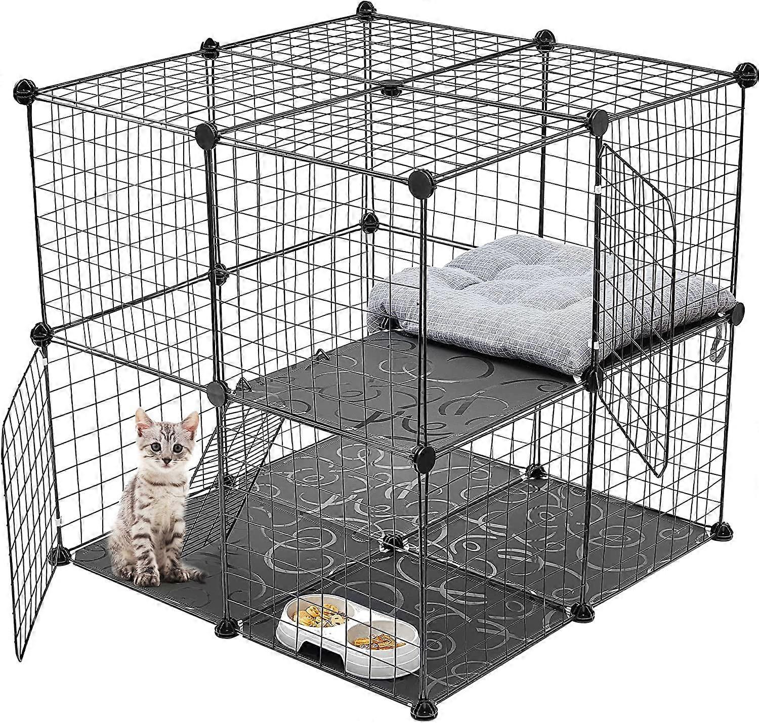 2 Tier Large Cat Cage Crate, DIY Pet Playpen, Detachable Metal Wire Kennel for Kitten, Puppy, Bunny - Black, 27.56"