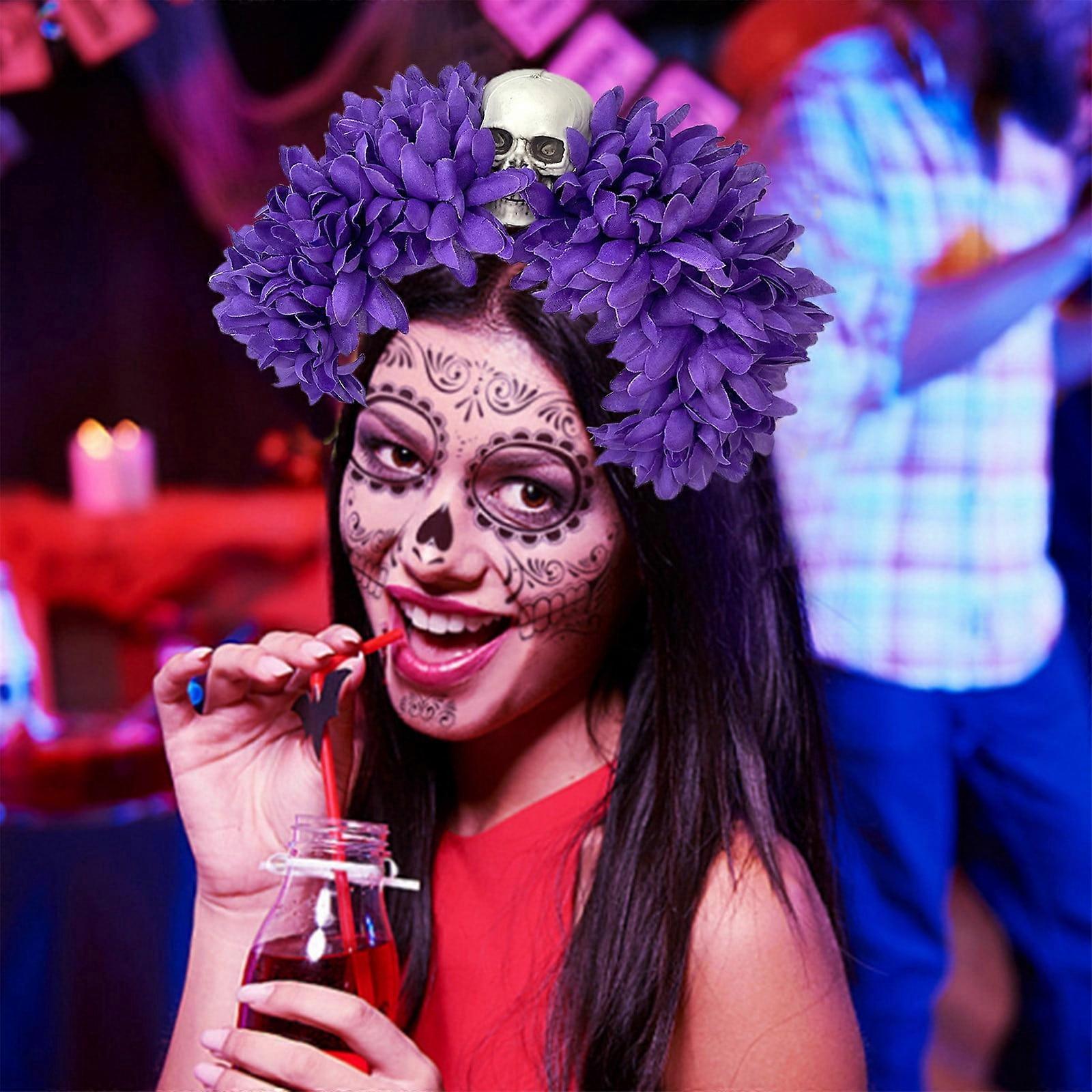 Halloween Skull Ornament Compatible with Skegnu, Ghost Festival Hair Hoops, Stained Rose Headbands for Party Gifts