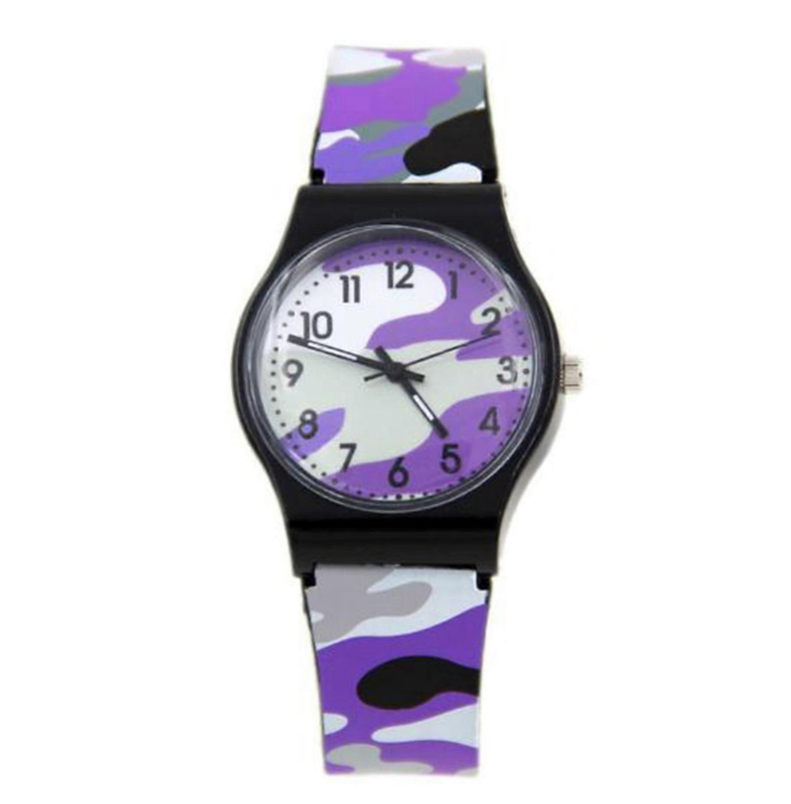 Quinlirra Watches for Women Camouflage Children Watch Quartz Wristwatch for Girls Boy Purple Fashion Travel Essentials