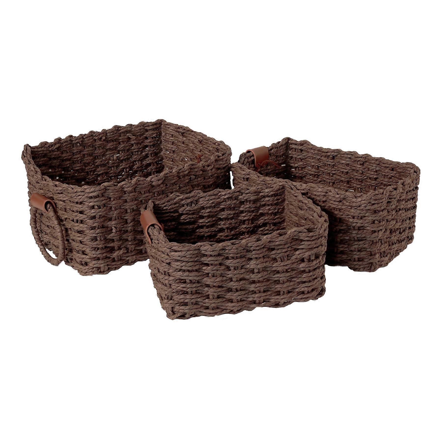 3PCS Woven Storage Basket, Paper Rope Storage Basket with Handle, Small Woven Basket for Organising, Decorated Cute Gift Basket