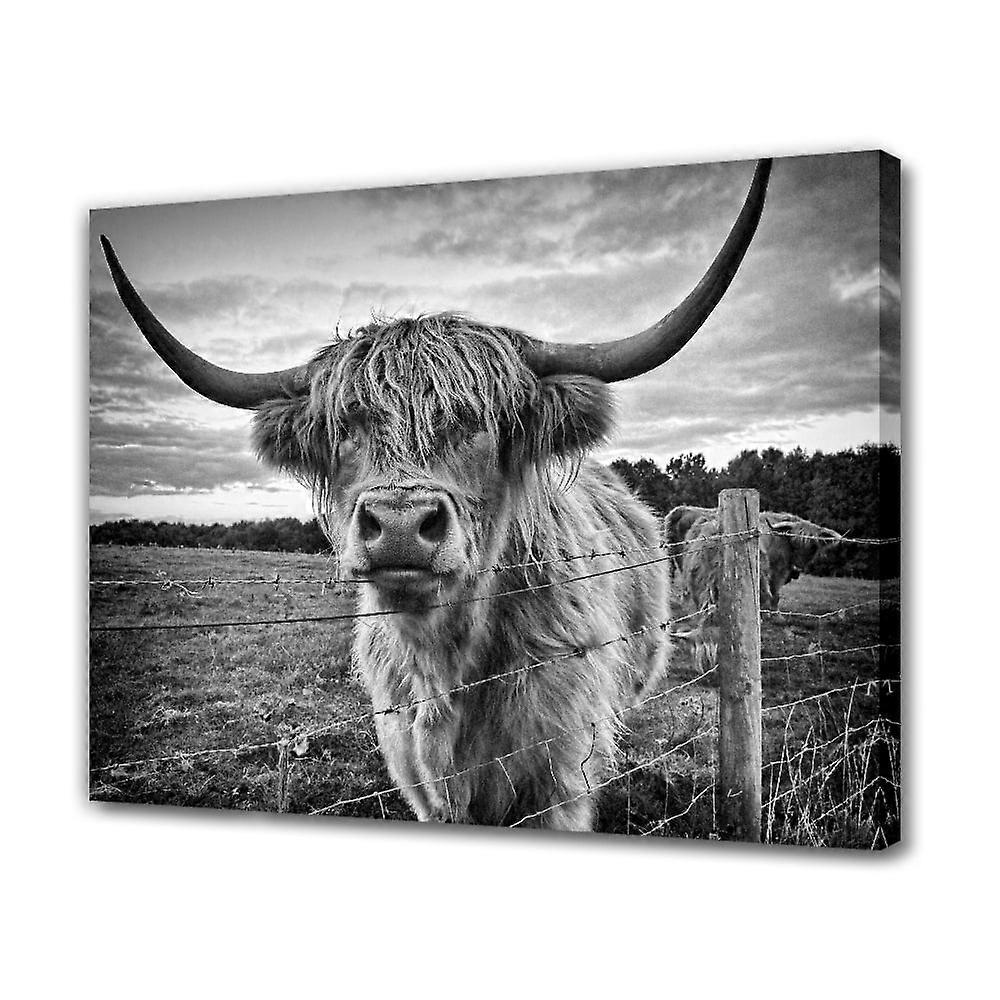 Black and White Highland Cattle Canvas Poster Bedroom Decor Sports Landscape Office Room Decor Gift,Frame-style,12x18inch(30x45cm)