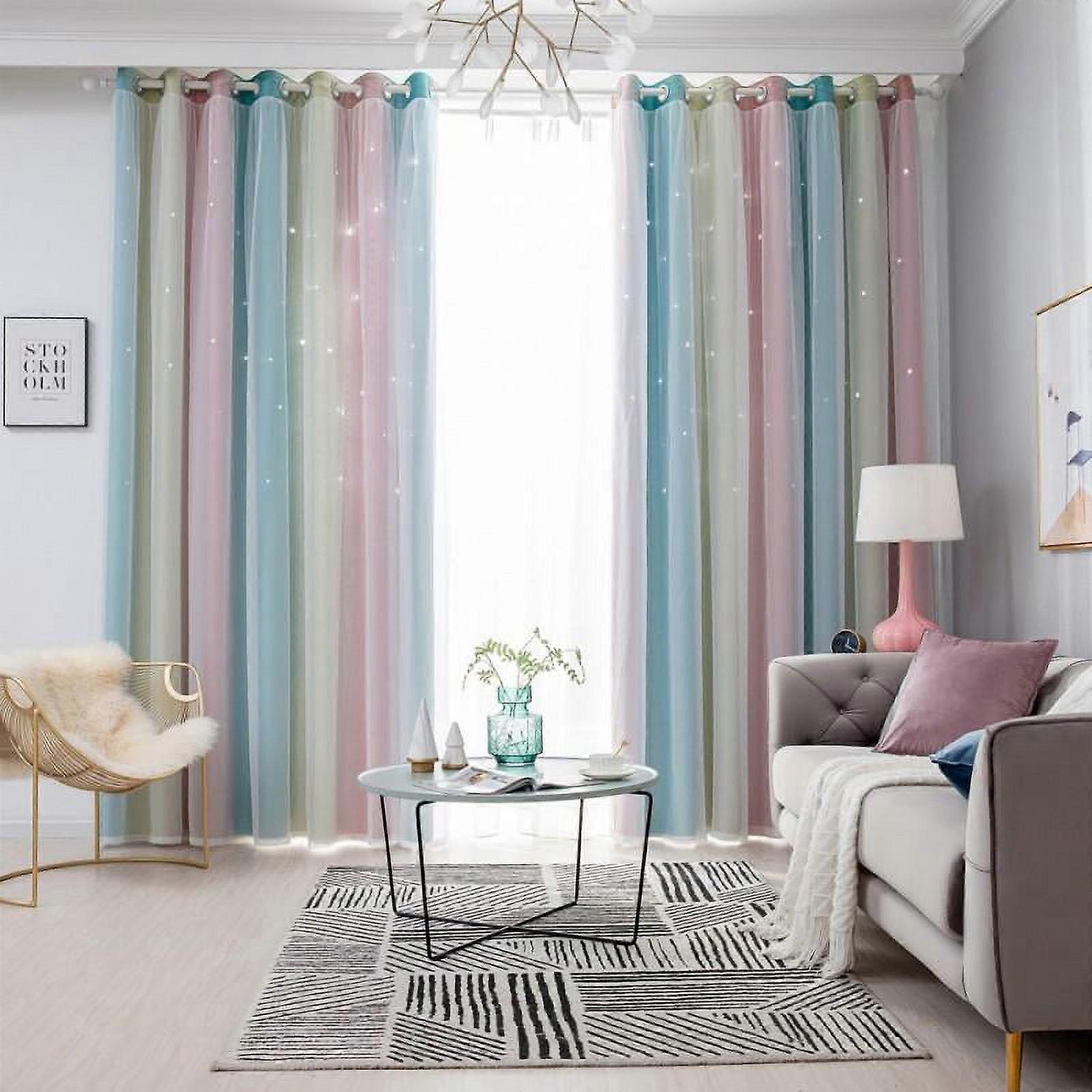 Feiona Color Starlight Curtains, Color Striped Hollow Star Curtains, Suitable For Children's Girls Bedroom And Living Room