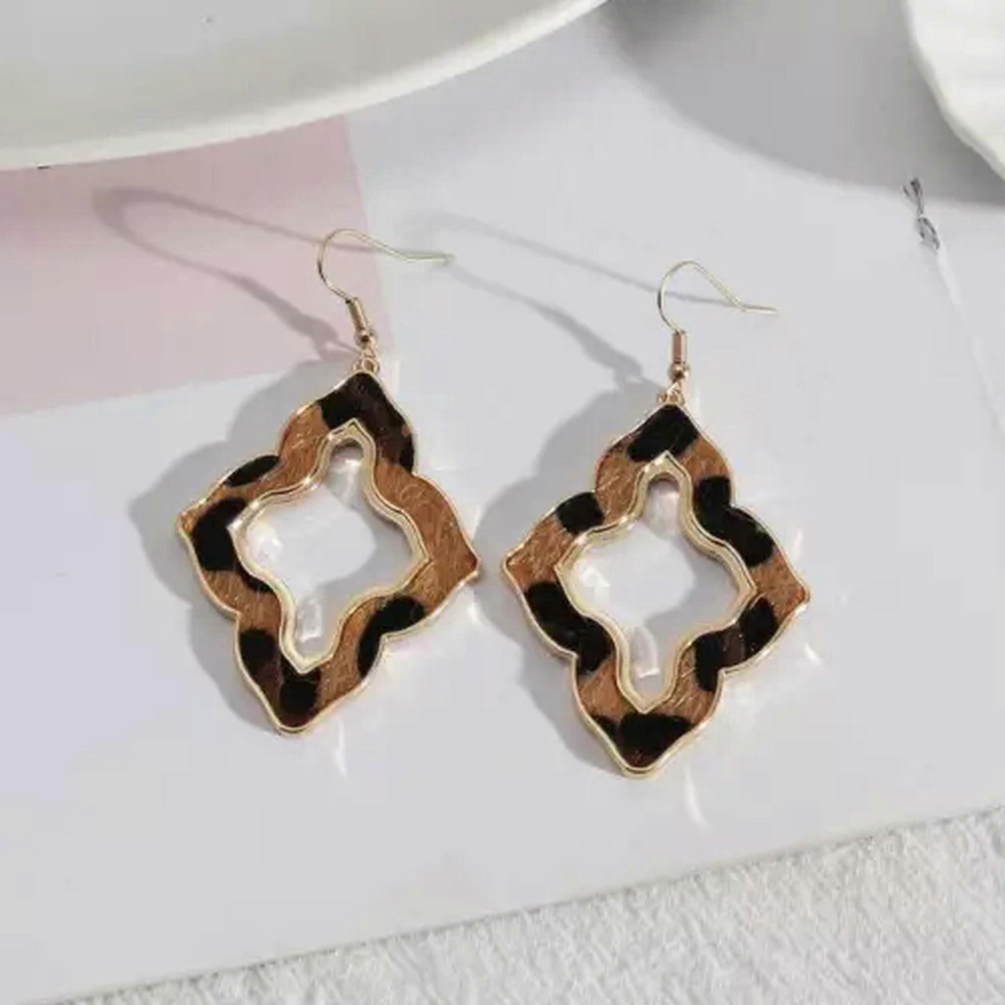 RSAMD Abalone Shell Leather Cross Magnolia Floral Moroccan Earrings for Women Jewelry-Leopard