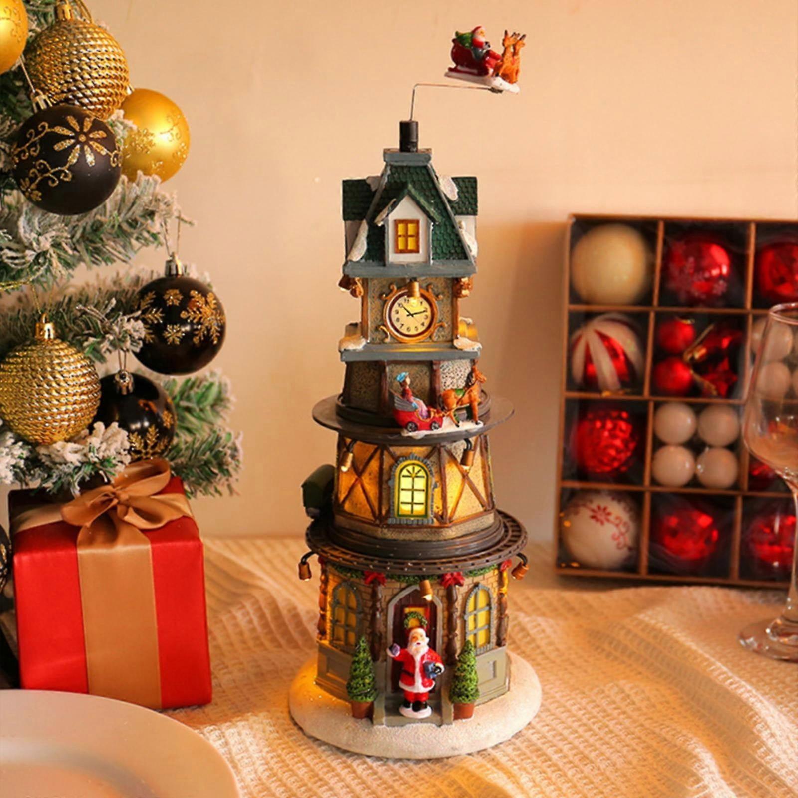 Yakbaofuo Ornaments Christmas Glow Rotating Music Box Children's Birthday Night Light Christmas Halloween Desktop Decorations