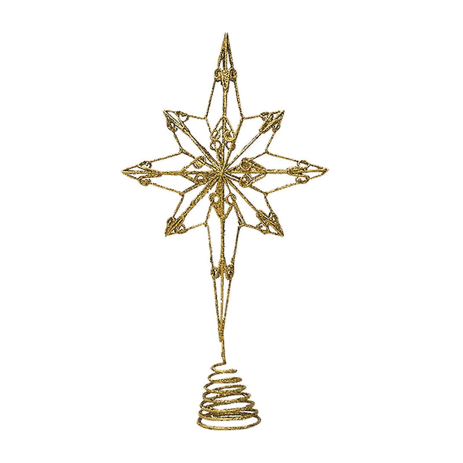 Miayilima Glitter Gold Star Desktop Ornament, Multi-Angle Hollow Out Christmas Tree Decor, Metal Top Star Party Decoration Gold2