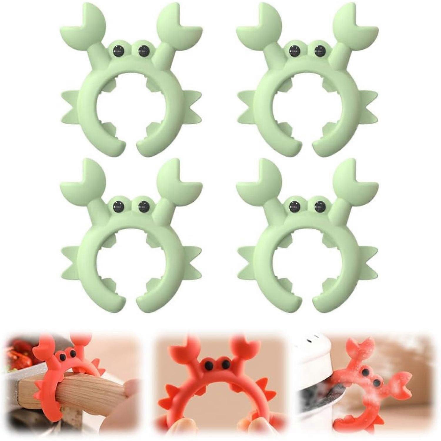 Creative Crab Shaped Silicone Spatula Rack, 4pcs Green - Universal Holder with Anti-Overflow Clip, compatible with most spatulas
