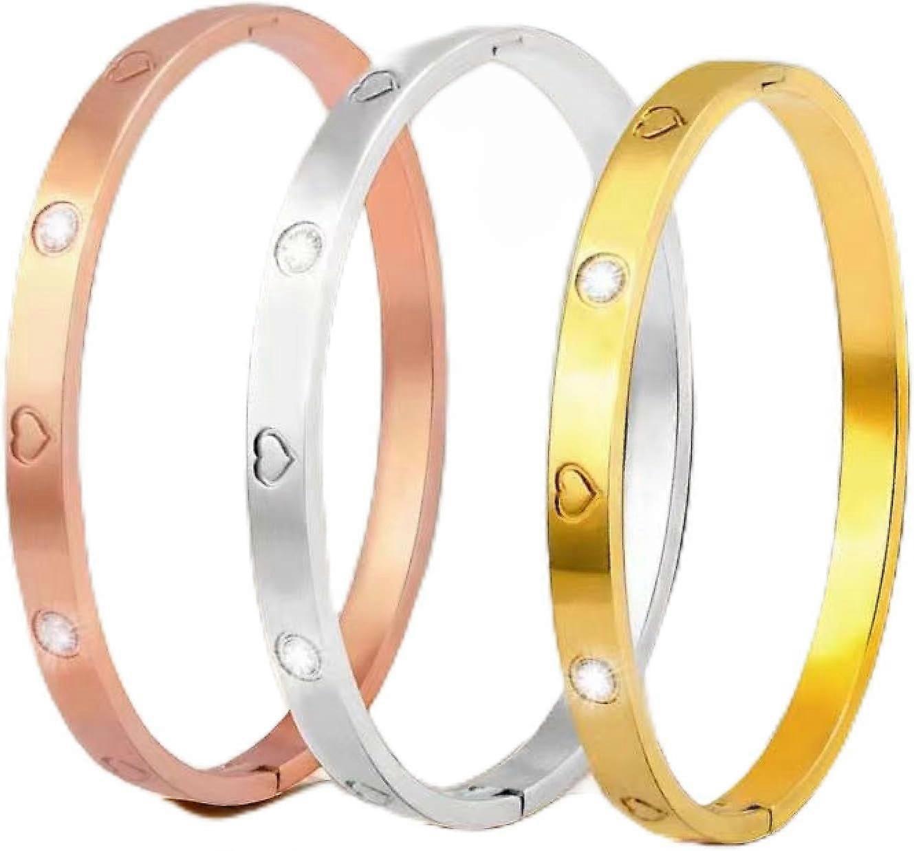 MOJSHMF Luxury Diamond-Encrusted Open Bracelet, Gold-Plated Stainless Steel, Trendy Titanium Steel Bracelet for Girls